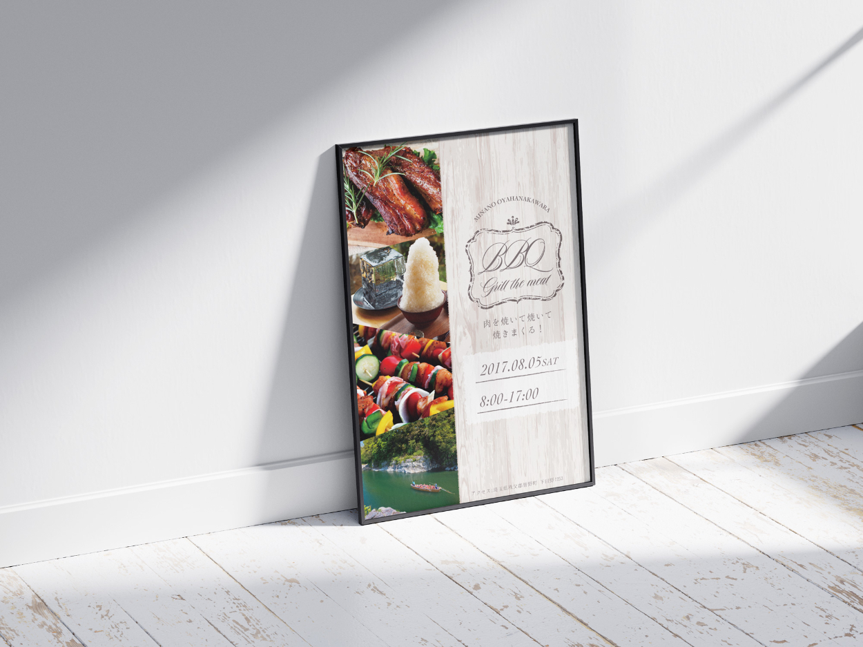 バーベキューの他にラフティングやかき氷等の観光地を載せて楽しさを表現しました。