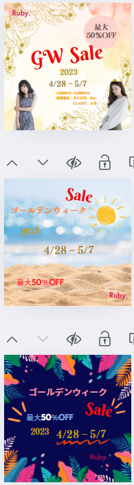 初夏の雰囲気が感じられるがそれぞれ違う印象で3パターン作成しました。