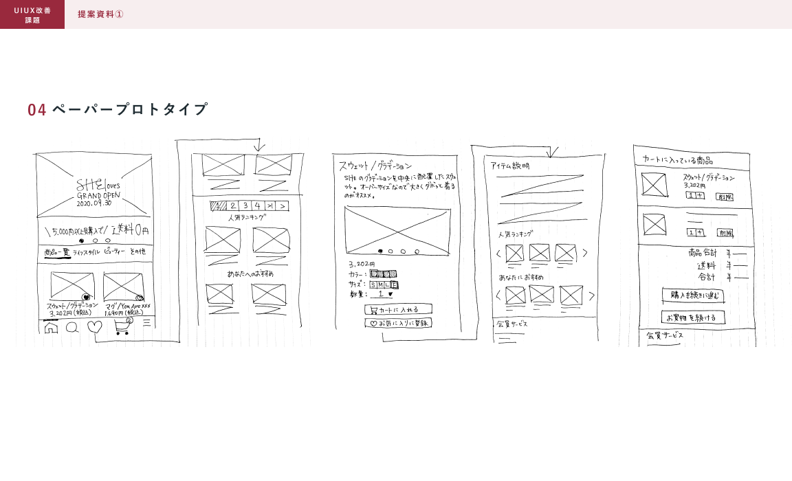 制作範囲:ペーパープロトタイプ、Figmaでのデザインカンプ、提案資料