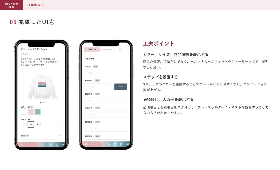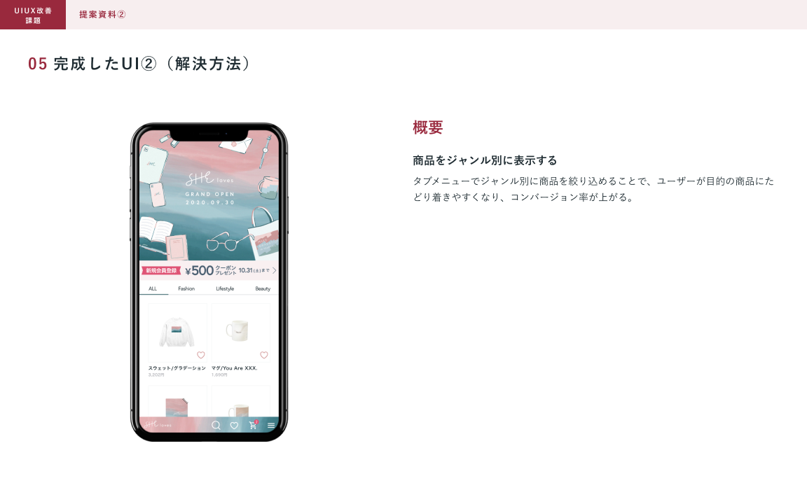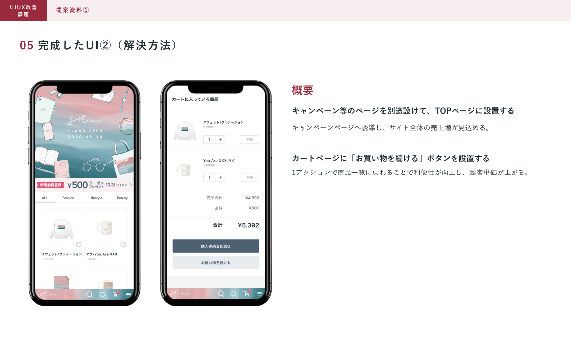 SHElikes MULTI CREATOR COURSE 6つめの課題。既存のWebサイトにおいて架空クライアントの課題の要因を考え、UIUXを提案しました。