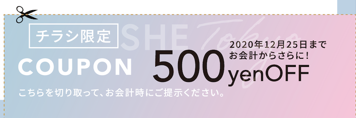 1番右下にチラシ限定クーポン情報をつけ、切り取りが分かりやすく伝わるようハサミのイラストを入れた。