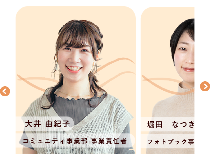 この架空LPサイトは、リクルーティングサイトであることを冒頭でユーザーに伝えるため、赤ちゃんの写真だけではなく、社員の方々の写真も使用しました。その際に、世界観を統一させるよう「ふわっ」とした切り替えのアニメーションをcssで実装しました。