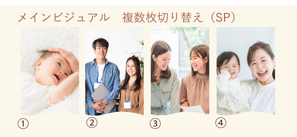 であったので、「ベビー用品=ママ、女性」というイメージが強いが、敢えて男性の写真もバランスよく配置し、ターゲットを絞らないように意図をもって写真を選定しました。