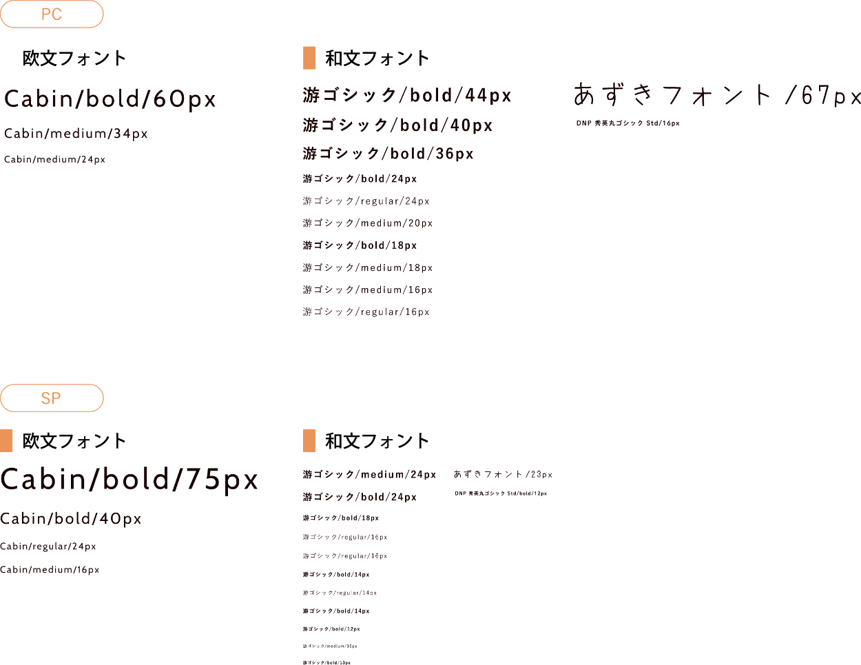 ・欧文も同様に、中立的なcabinを用い、游ゴシックとの相性を考慮し使用しました。