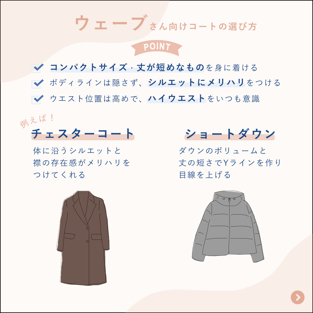 - コート選びのキーワードには可読性を重視して下線を追加。また、コートの挿絵も入れることで一瞬で選ぶべきコートのイメージを掴めるように工夫した。