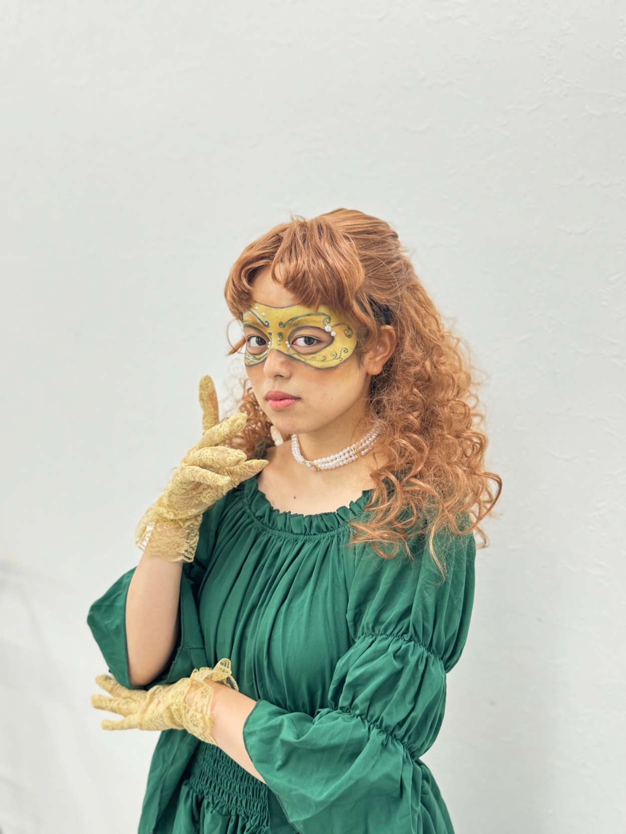 仮面舞踏会 目羅帆ノ夏 専門学生 オペラ座の怪人マスカレードのシーンに出てくる人物をイメージして制作しました。分厚い仮面を表現するために立体感を何度も調節しました。ウィッグもハーフアップでアレンジしました。