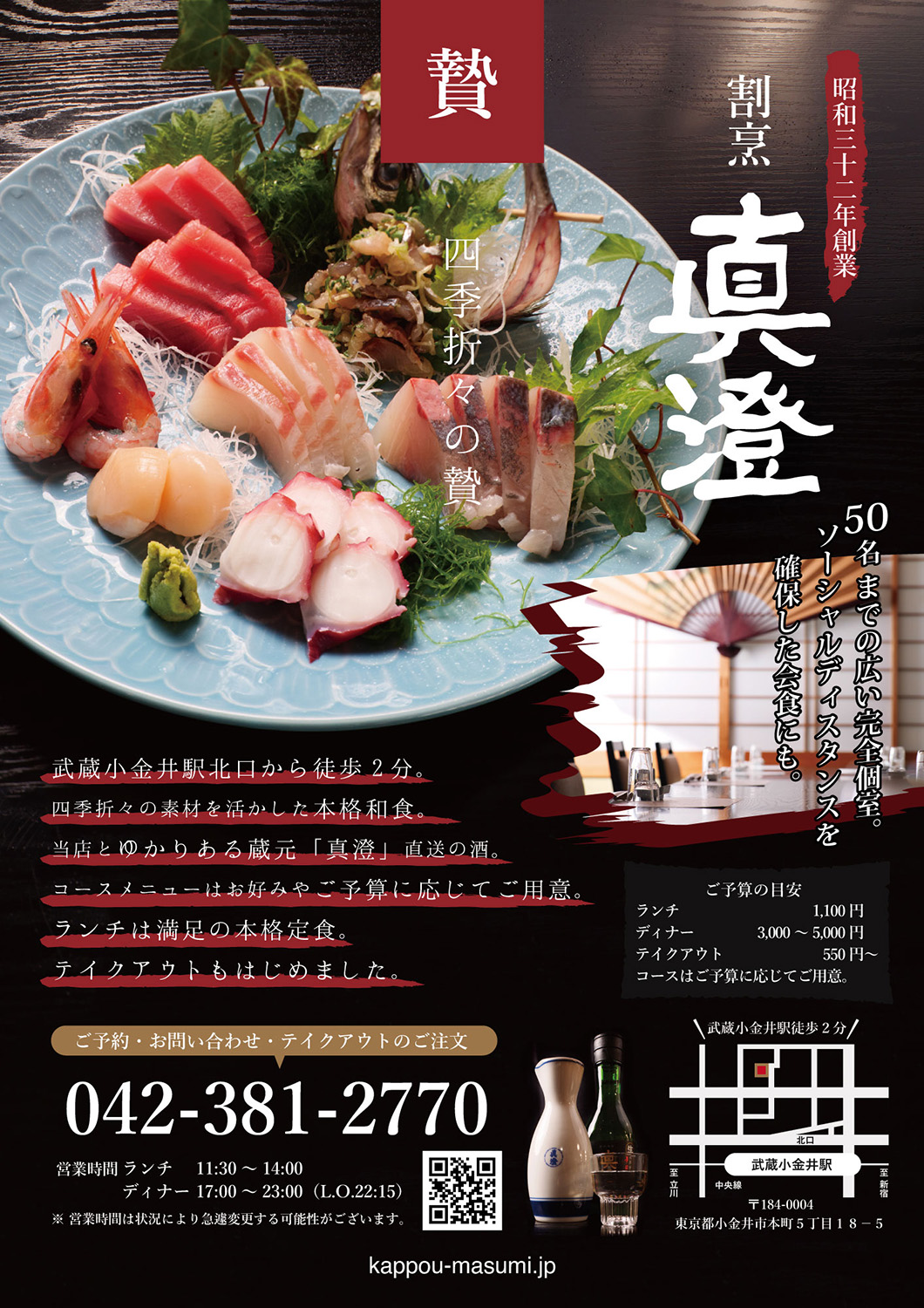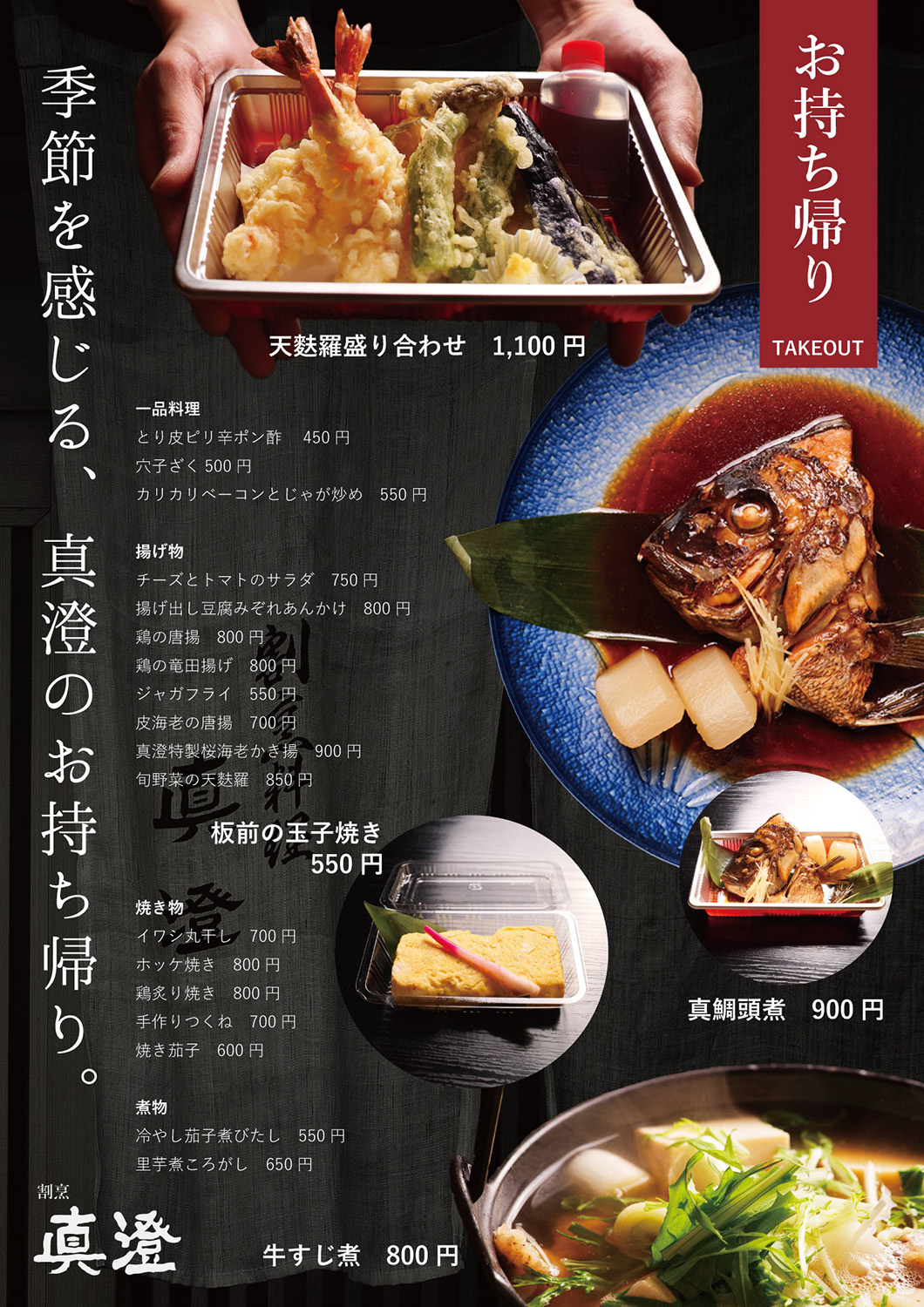 老舗割烹料理店のコロナ禍における飲食需要喚起、テイクアウトの促進を目的としたチラシ作成。