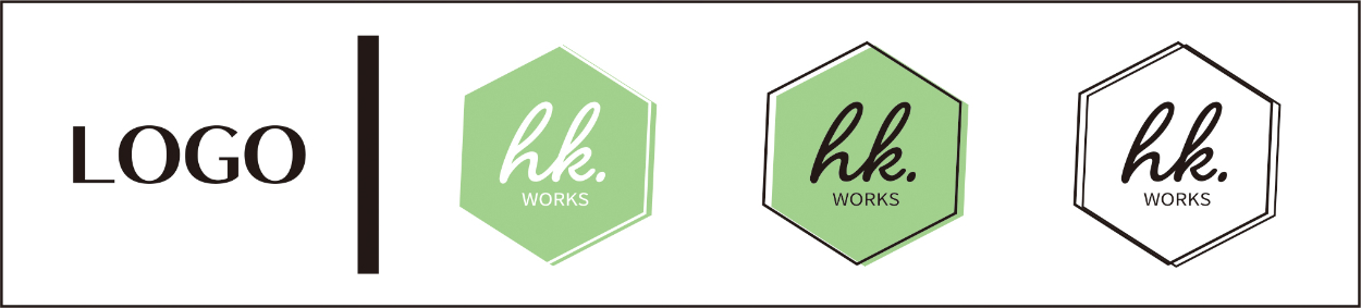コンセプト:文字の丸みで柔らかいイメージを表現し、六角形で囲むことにより、引き締めてみました。