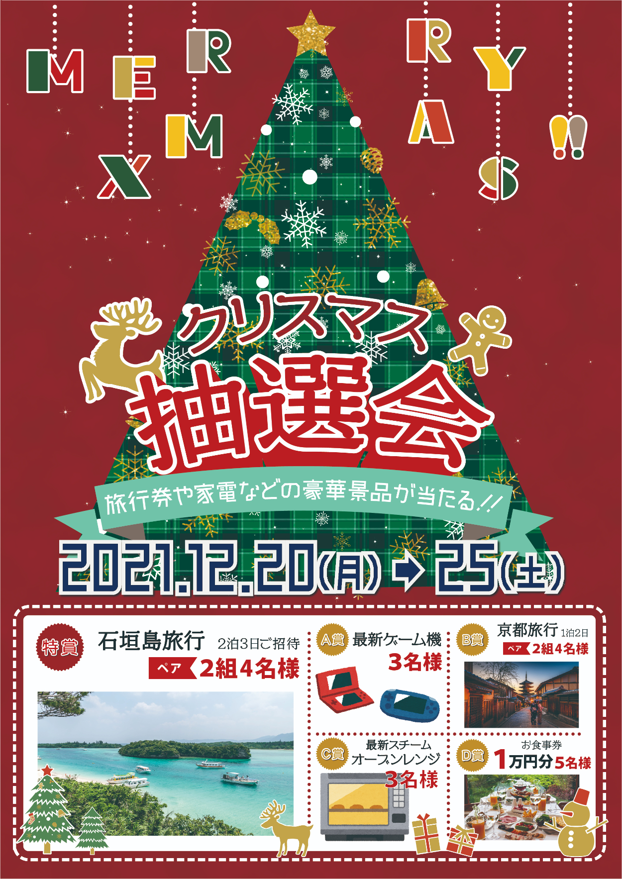 コンセプト:クリスマスのイベントの広告を制作しました。全体的にクリスマスのイメージカラーを使い、重なる部分などは縁を付けるなど、見やすさを意識して制作しました。MerryXmas部分のタイポグラフィーをバランス良く仕上げるのが難しかったです。