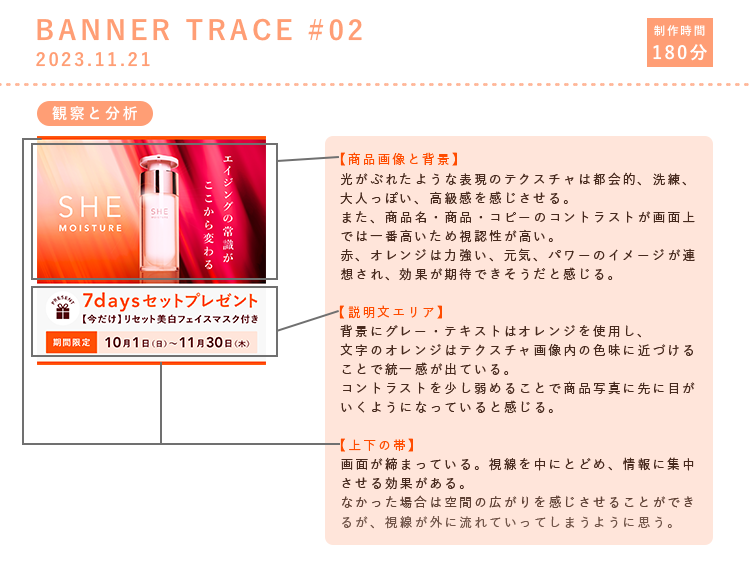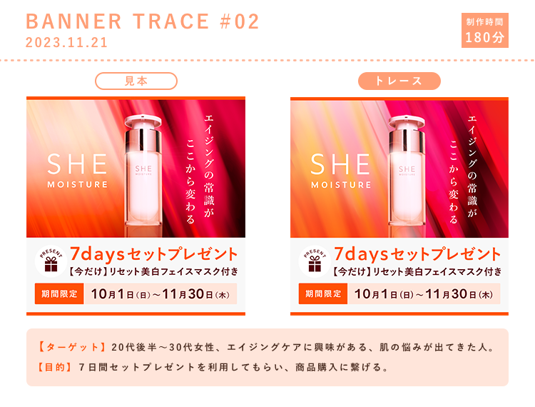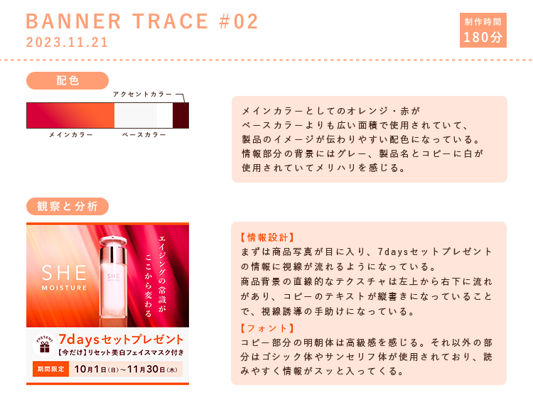 既存のバナーを分析・トレースすることでデザインを見る目を養い、効率よくツールの使い方を習得する
