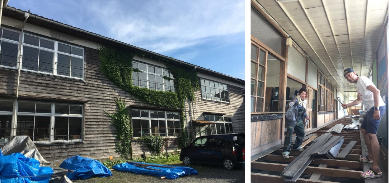 施設に再利用するため、解体予定になっている小学校の木造校舎の床材、階段を回収作業。壊されてなくなる場にいて、未来につながる想像を膨らませながらの作業。壊しているけど、なにかをつくっているような感覚を持つ。