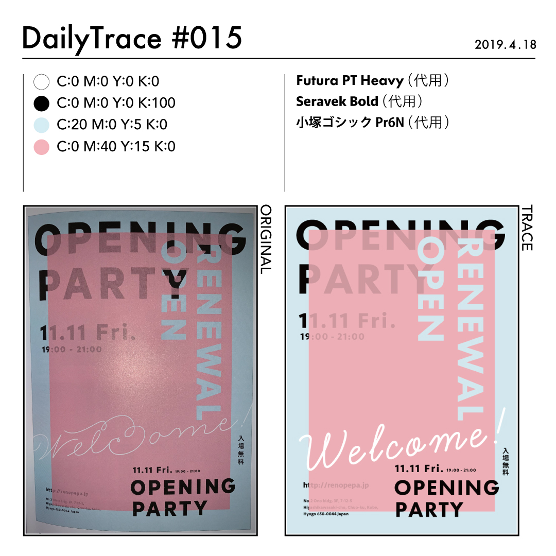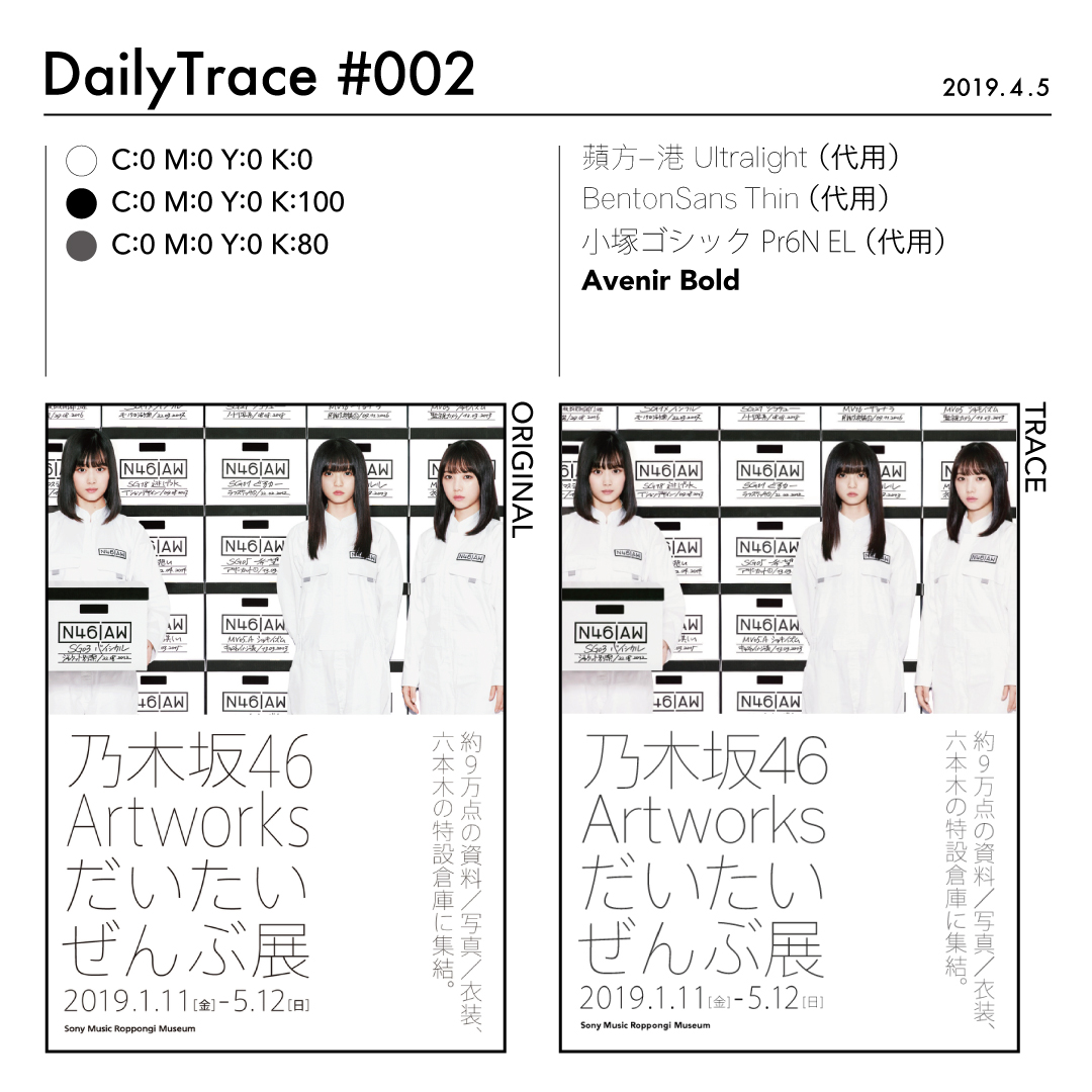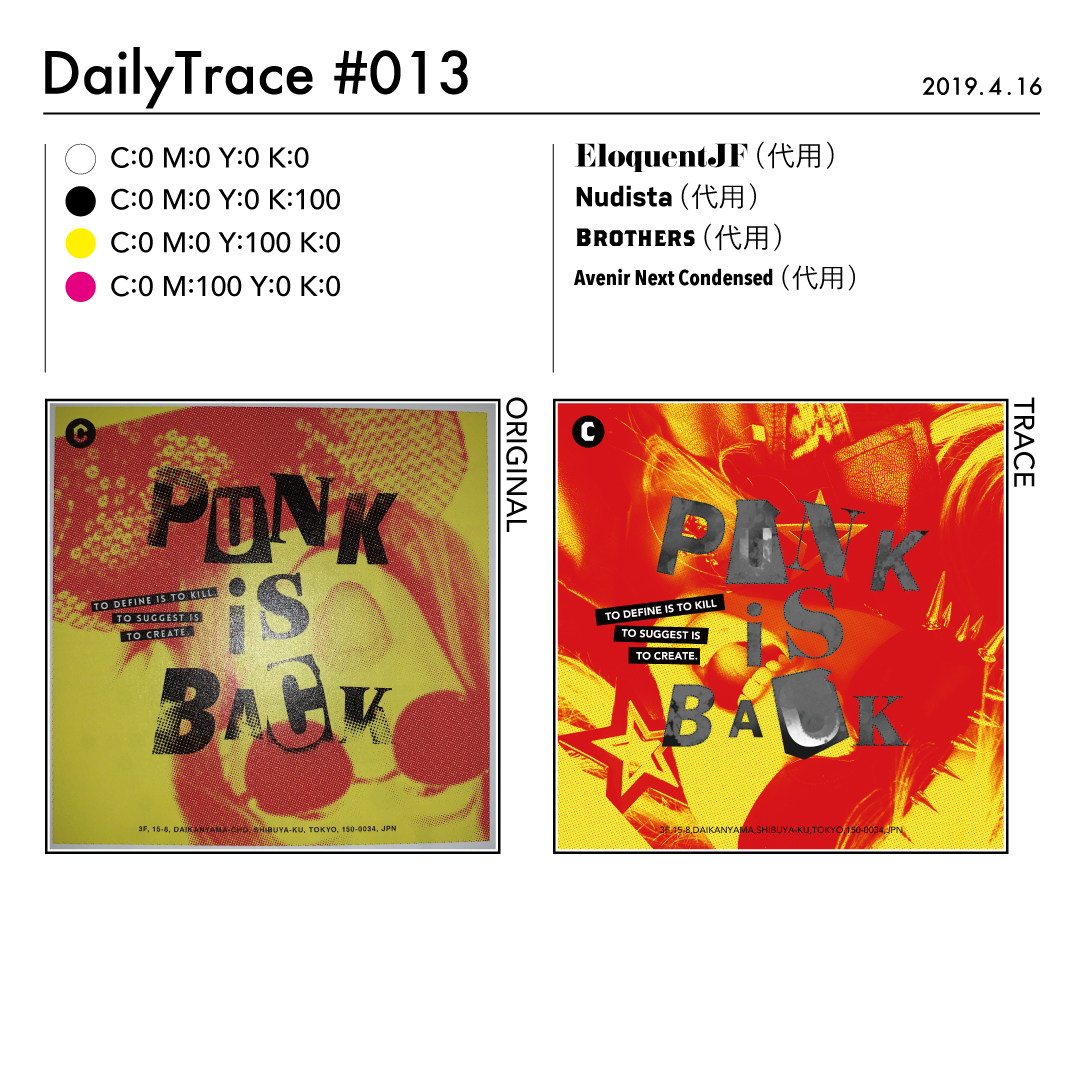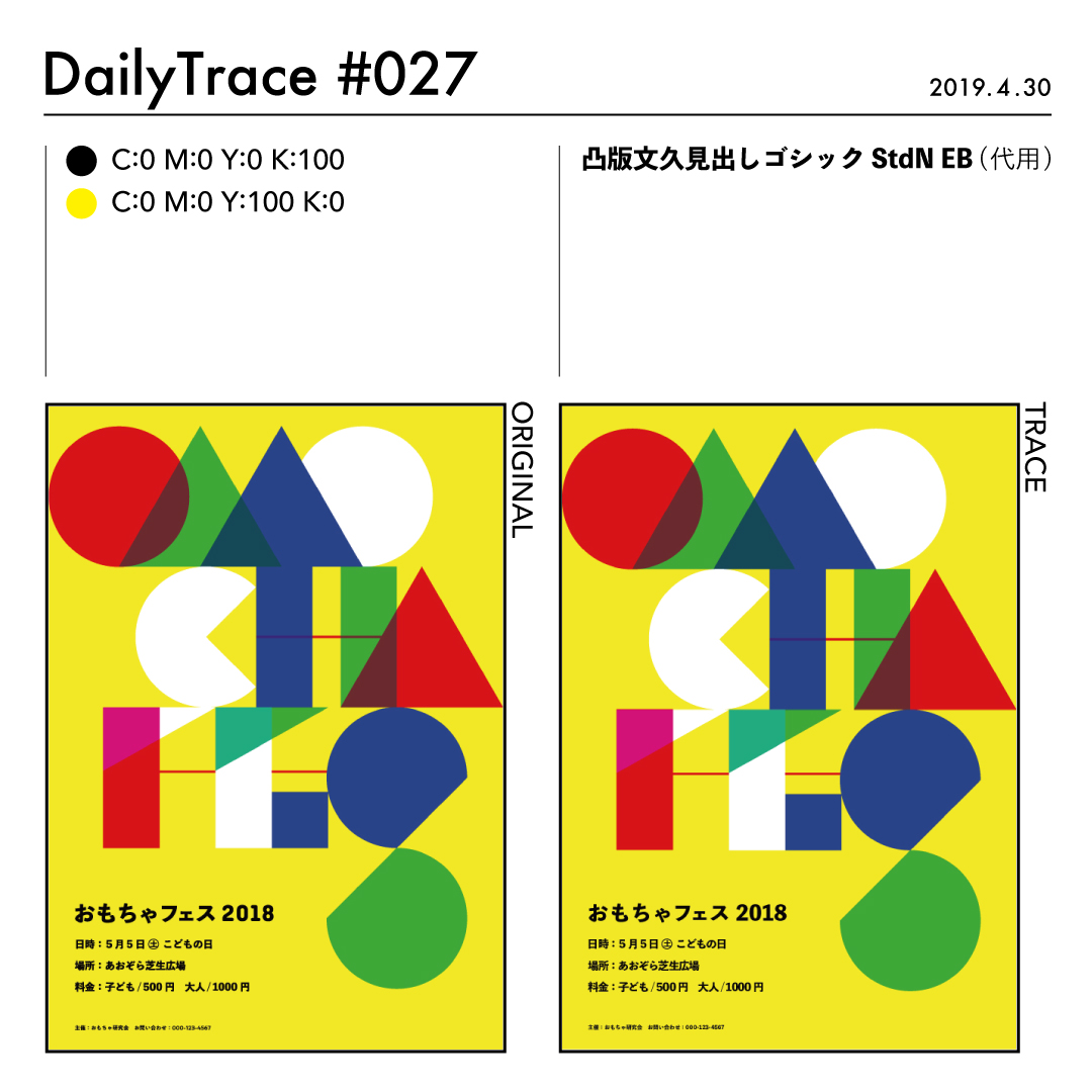 トレースを行った後は、使った色とフォント、オリジナルの作品と自分がトレースした作品を比較できるようにまとめました。