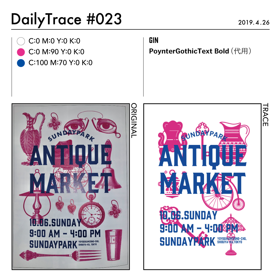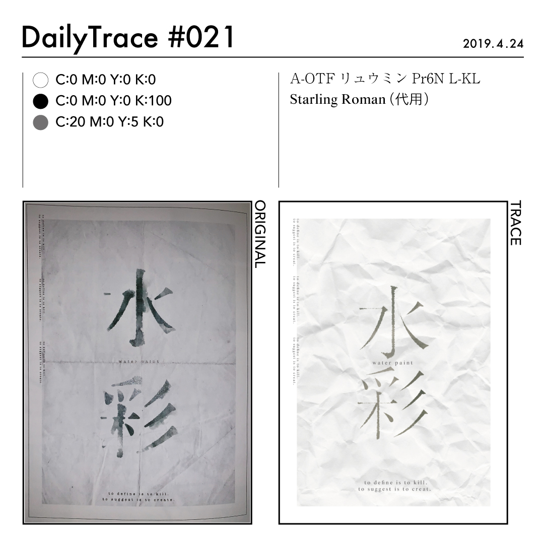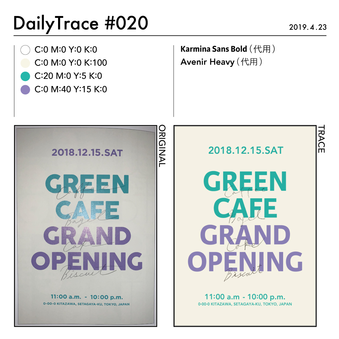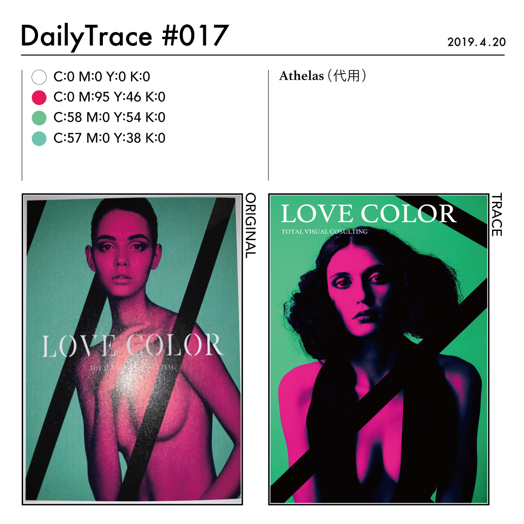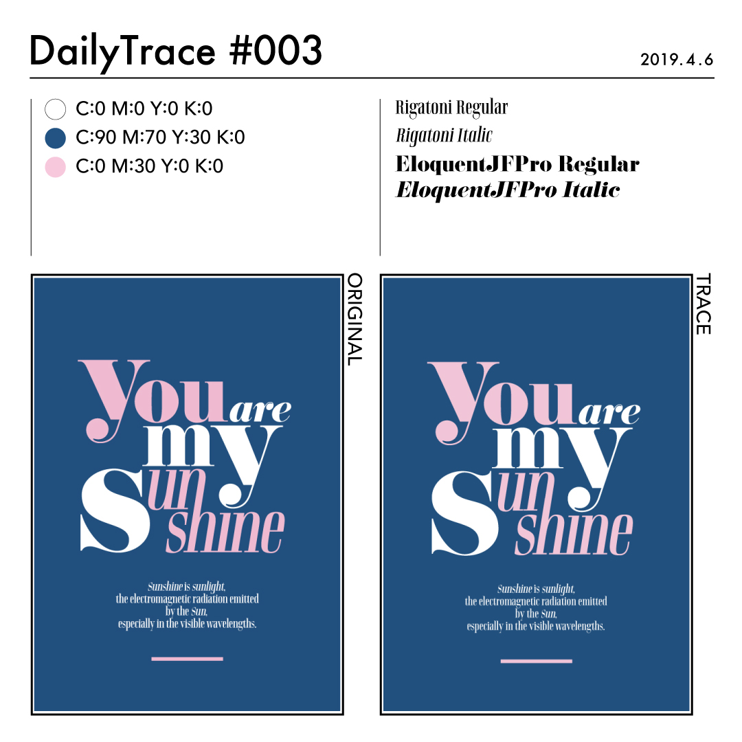 トレースを行った後は、使った色とフォント、オリジナルの作品と自分がトレースした作品を比較できるようにまとめました。