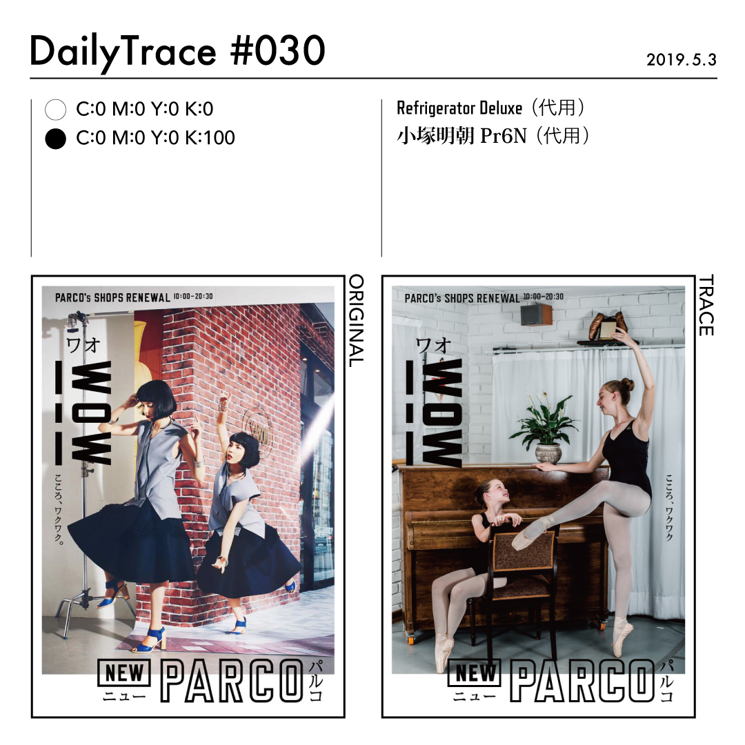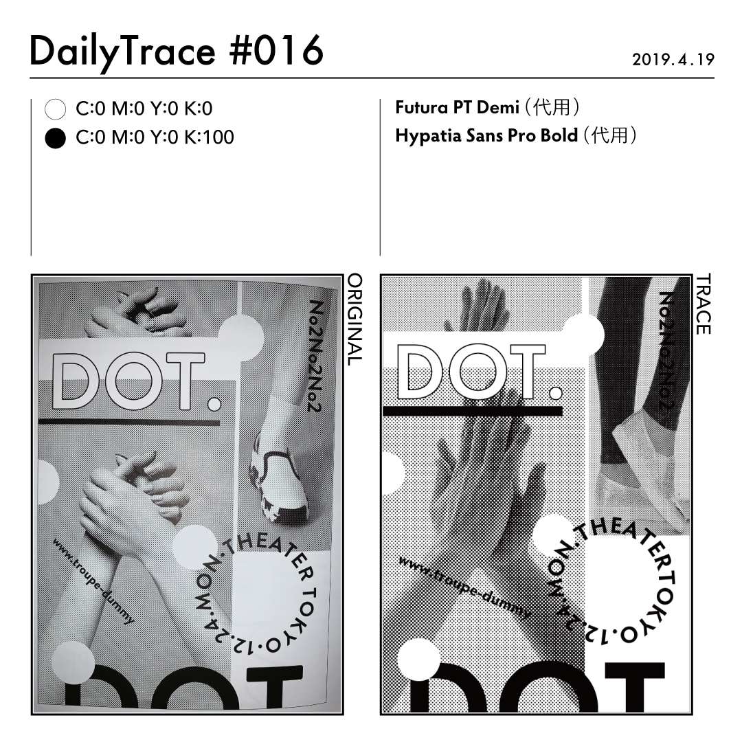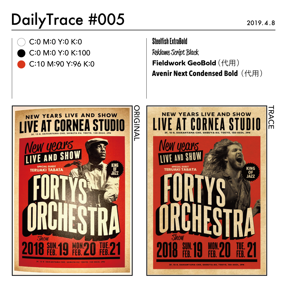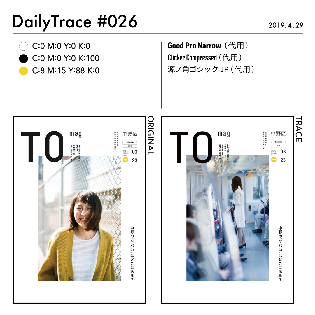 トレースを行った後は、使った色とフォント、オリジナルの作品と自分がトレースした作品を比較できるようにまとめました。