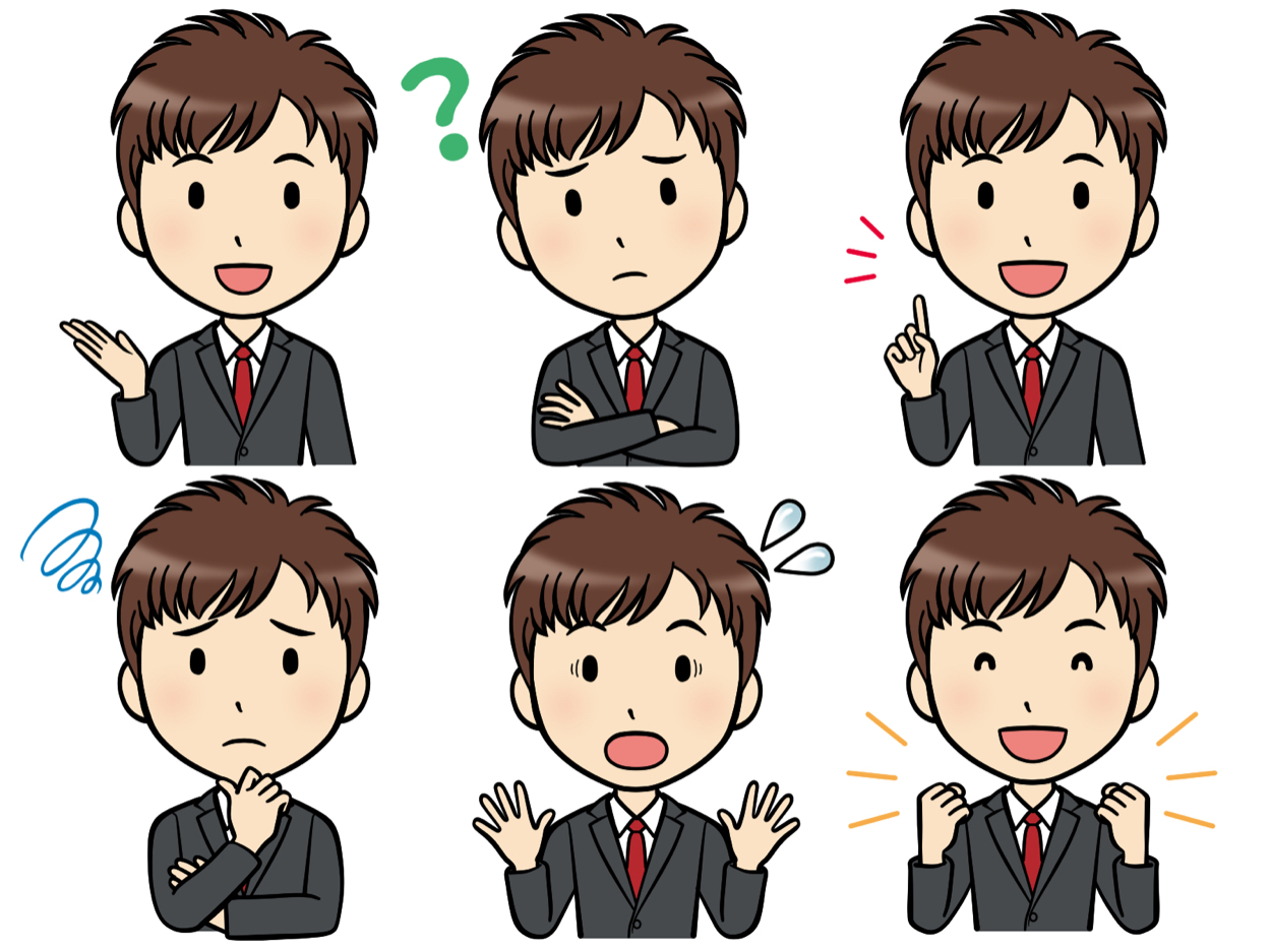 フリー素材サイトに応募したイラスト。いろいろな表情のビジネスマンとOLを描きました。