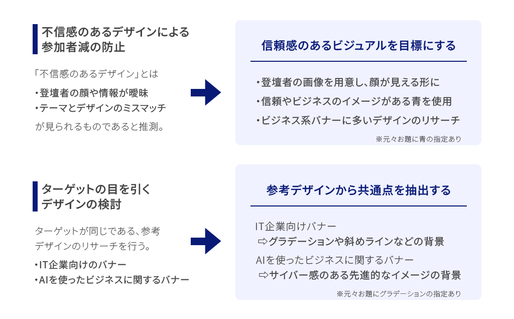SNSで流れるセミナーの中には見た人が不信感を感じてしまうものもあり、そういった機会損失を防ぐため、「不信感のあるデザイン」(セミナーを怪しいと感じてしまうデザイン)とはどんなものであるかを考えました。