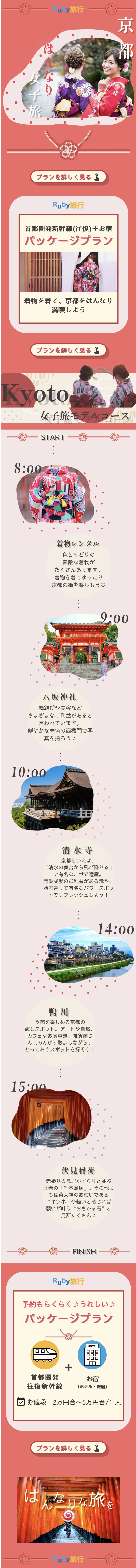 ・女性の方に楽しんでいただける京都旅行モデルコースを紹介し、パッケージプランの検