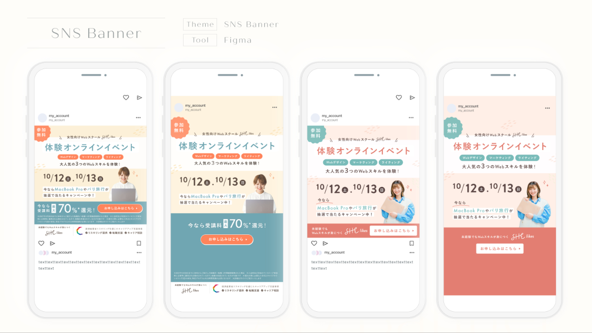 情報過多にならないよう整理しながらも、しっかり訴求できるクリエイティブを意識して制作しました。
