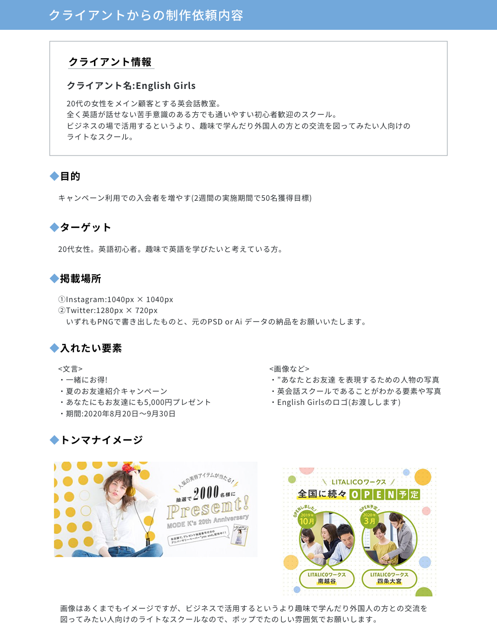 SHElikes MULTI CREATOR COURSEの課題で、バナー制作に取り組みました。架空クライアントからの依頼要件をもとにユーザーストーリーを考えながら情報設計とビジュアルデザインをまとめました。