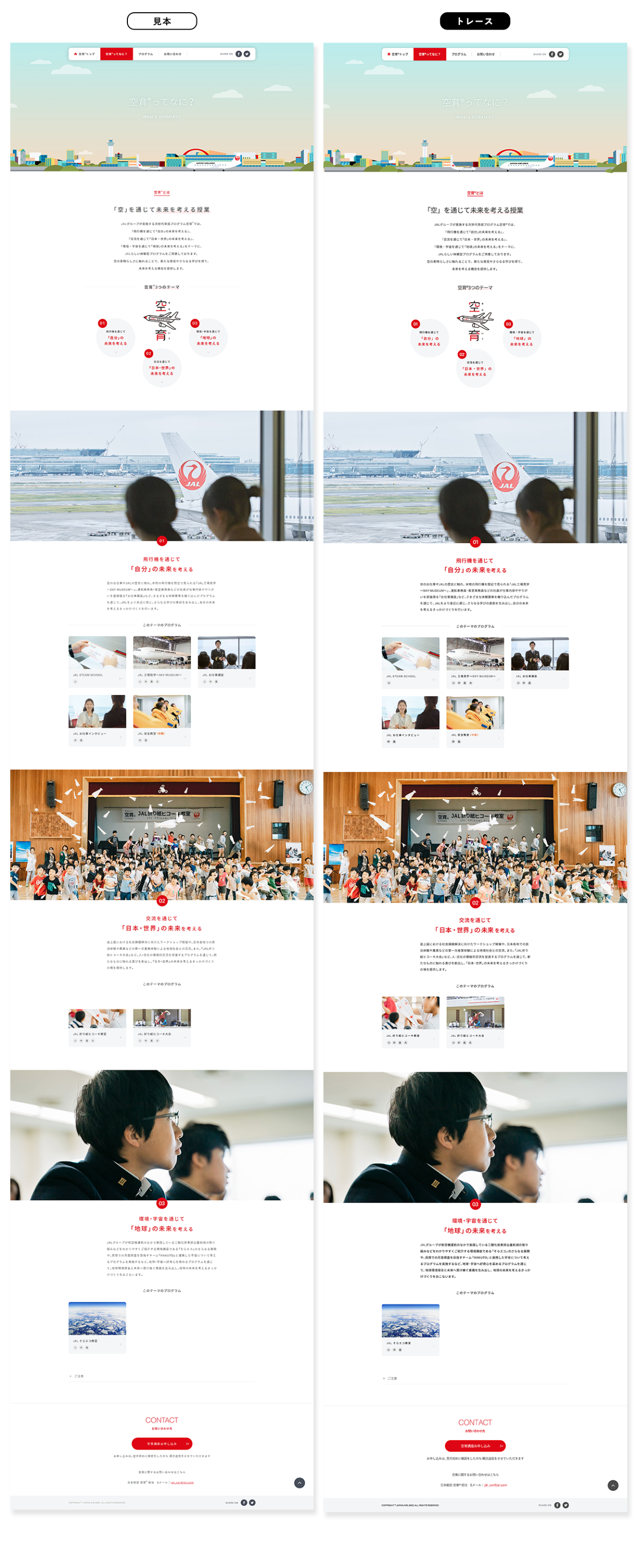 日本航空 様が提供する「空育」のLPをトレースしました。
