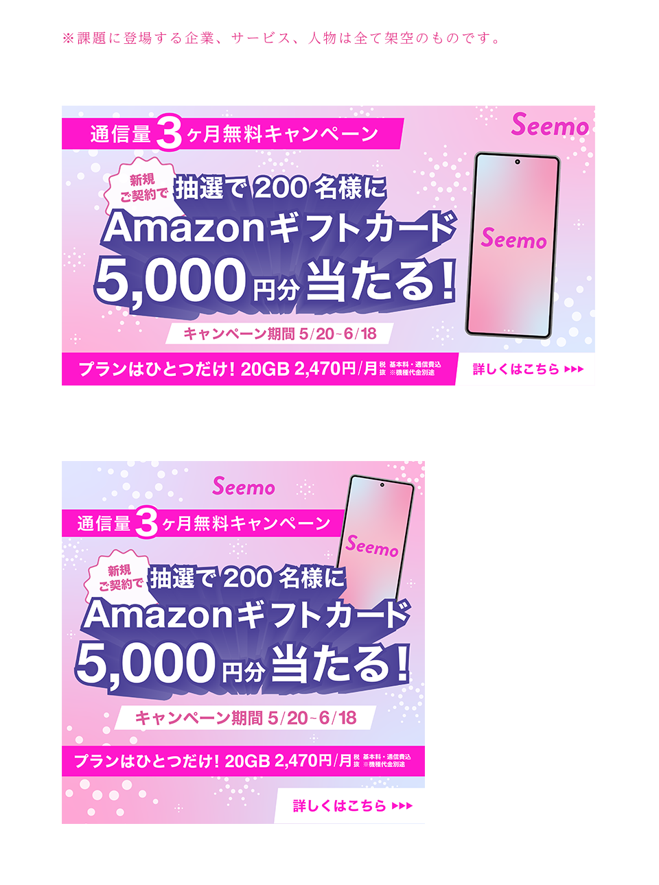 SHElikesでの課題制作バナーになります。 ※課題に登場する企業、サービス、人物は全て架空のものになります。