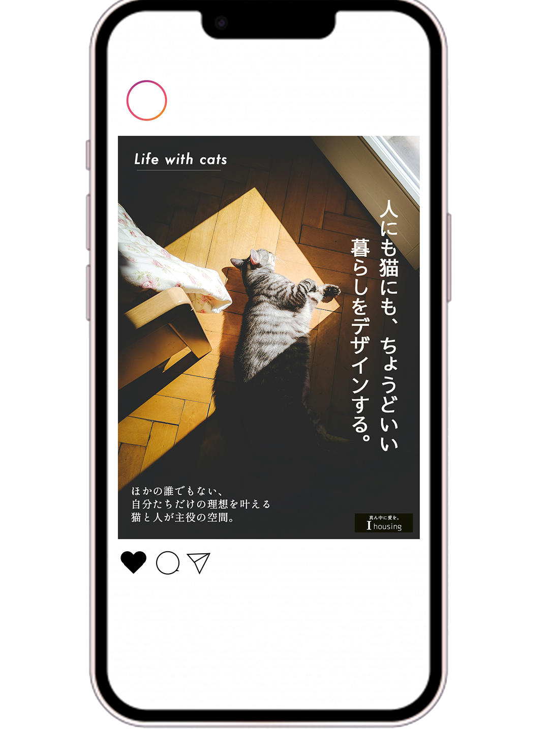 広島のある住宅デザインメーカー「I housing(仮称)」を分析し、 Instagramのバナー広告を制作しました。