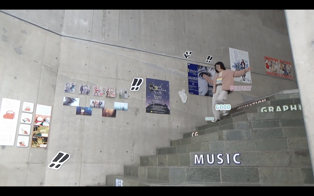 音ゲーが現実世界と融合したら...という世界観で制作しています。歩くたびに床が光り「GOOD」や「PERFECT」の文字が浮かび上がり音ゲーの演出を再現しています。