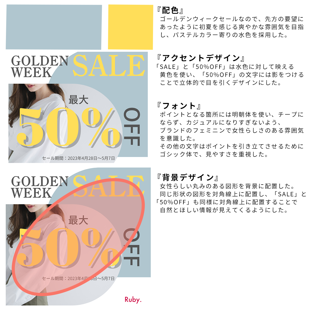 概要 : レディースアパレルECサイトのゴールデンウィークセール告知バナーの制作依頼
