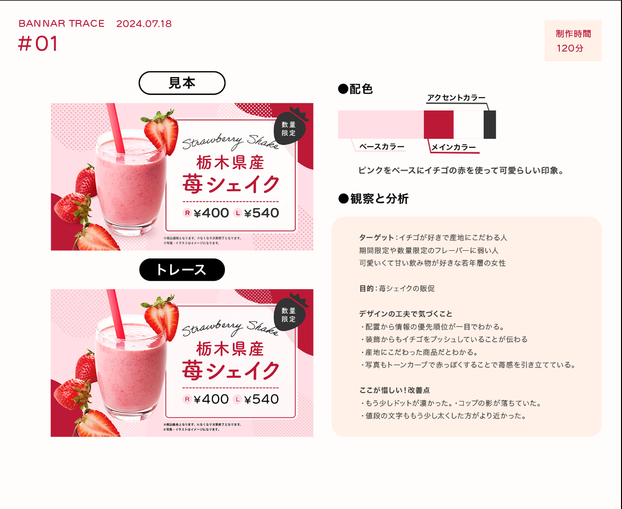 これからも、トレース・分析を通して、デザインの幅を広げつつスキルアップを目指します。