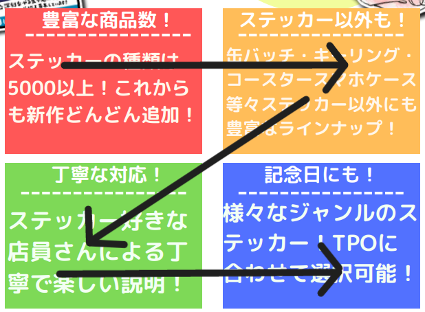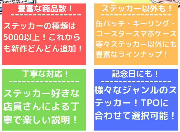 見やすくするために載せるステッカーの数を4つに絞り、その上で全く異なるジャンルのステッカーを選ぶことで、様々なステッカーがあることを視覚的にわかるようにしました。