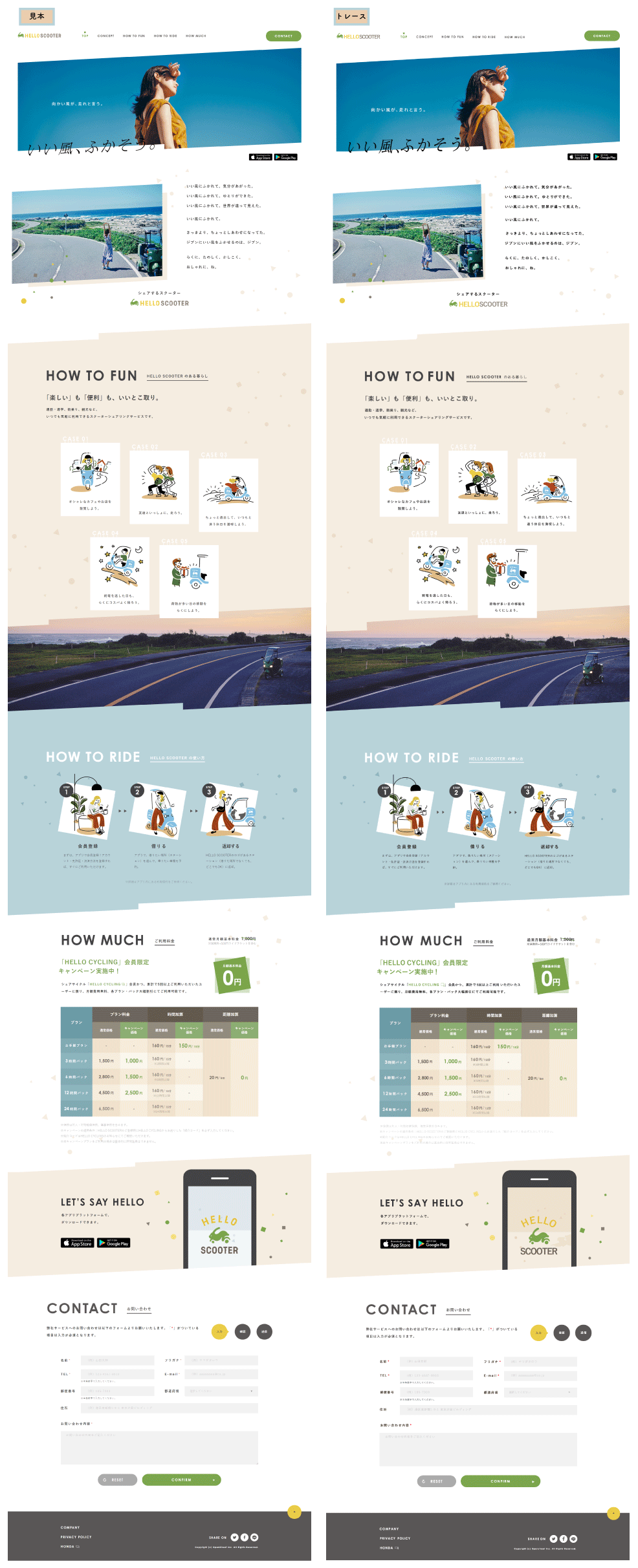 HELLO SCOOTER のLPをトレースしました。(実際のサイトはこちらです)