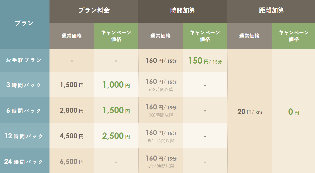 2.料金表の表を忠実に再現した