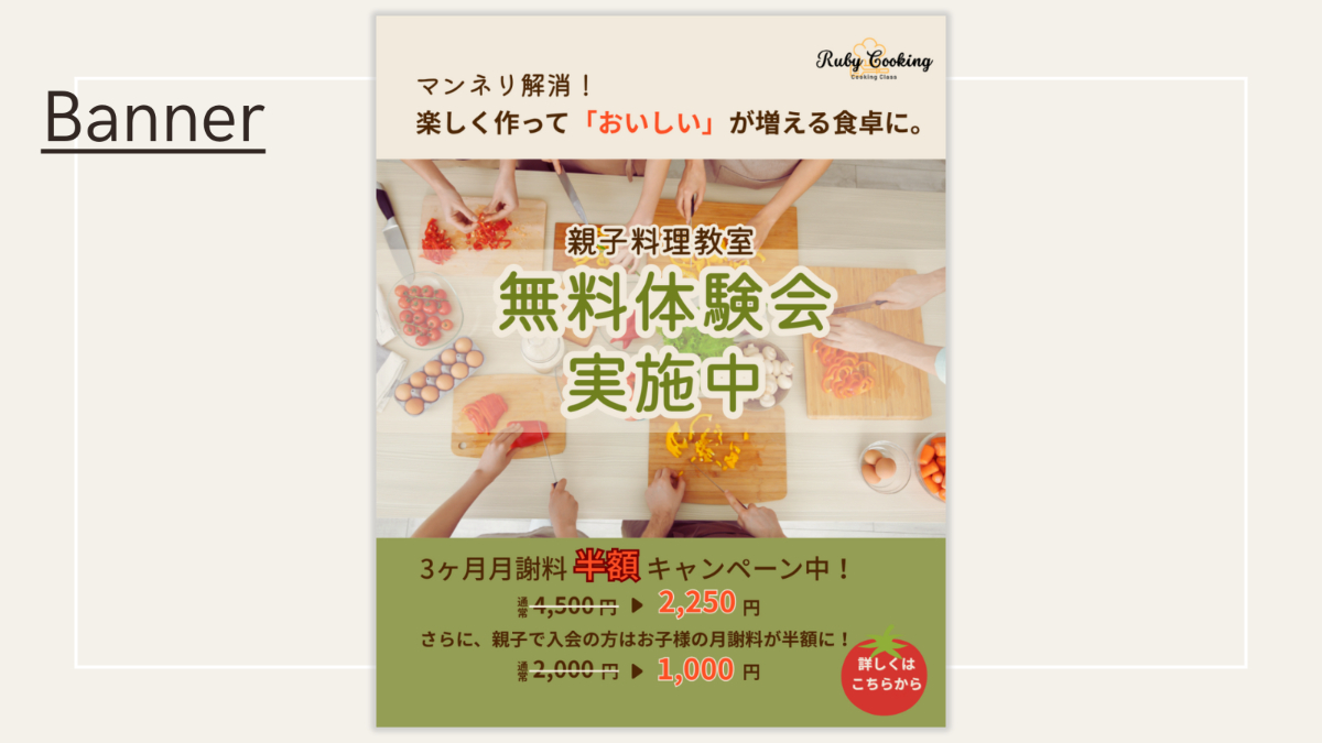 【HerTech模擬案件】親子料理教室 入会誘導バナー