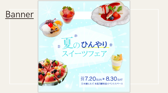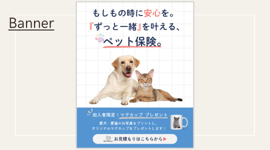 ・入会誘導バナー作成のため「無料体験実施中」を中央に配置し、1番目を引くポイントとなるよう意識しました。