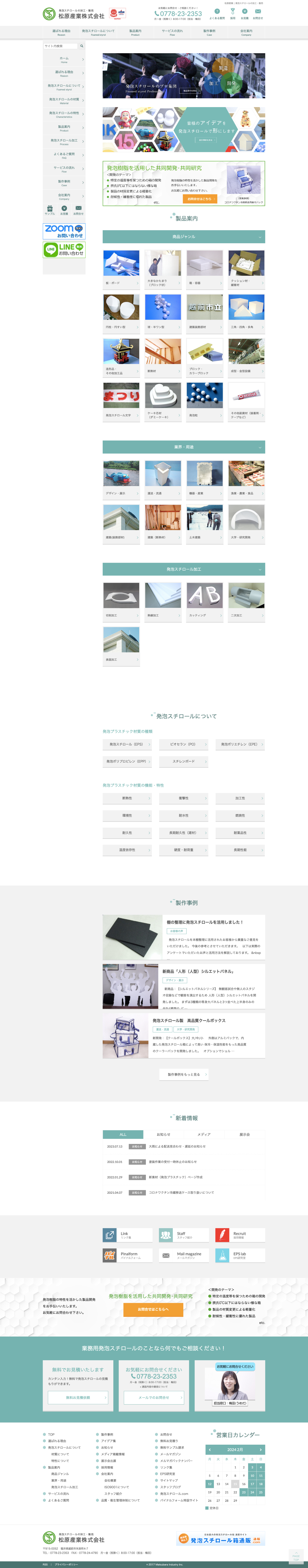 発泡スチロール製造会社 コーポレートサイト - 松原産業様 コーポレートサイト作品の狙いや目的:コーポレートサイト リニューアル作品のコンセプトやポイント:ページ数が膨大だったため、スタイルガイドの重要性を再認識した案件でした。制作時間:約3ヶ月担当:デザイン, コーディング, ディレクション WEBSITE