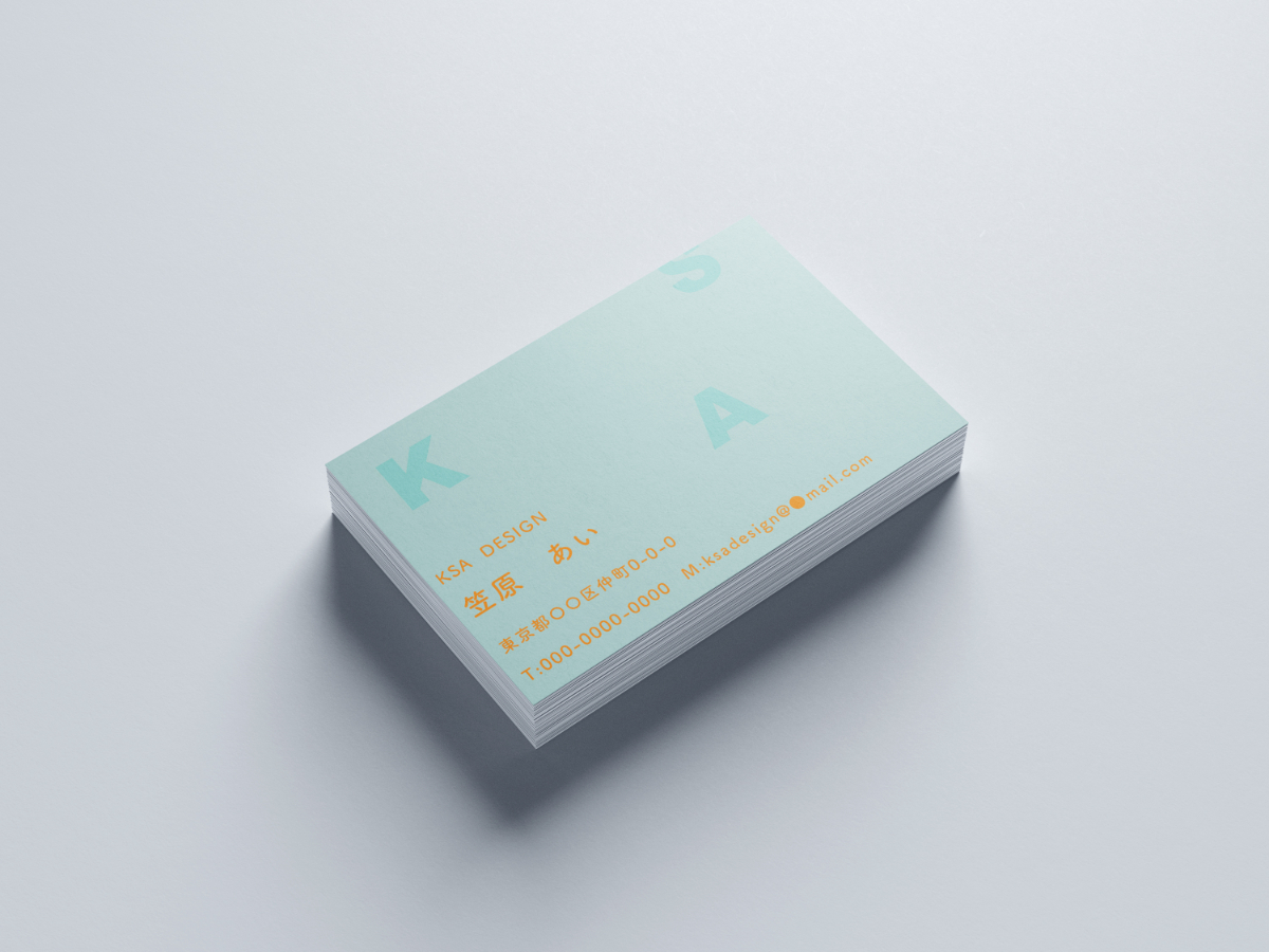 【自主制作】デザイン事務所の名刺 Nao.T WEBデザイナー ロゴの文字をトライアングル状に3点に配置し、シンプルでありつつも遊び心のあるデザインにしました。文字の色には背景に溶け込むように調整し、悪目立ちしないよう工夫しています。