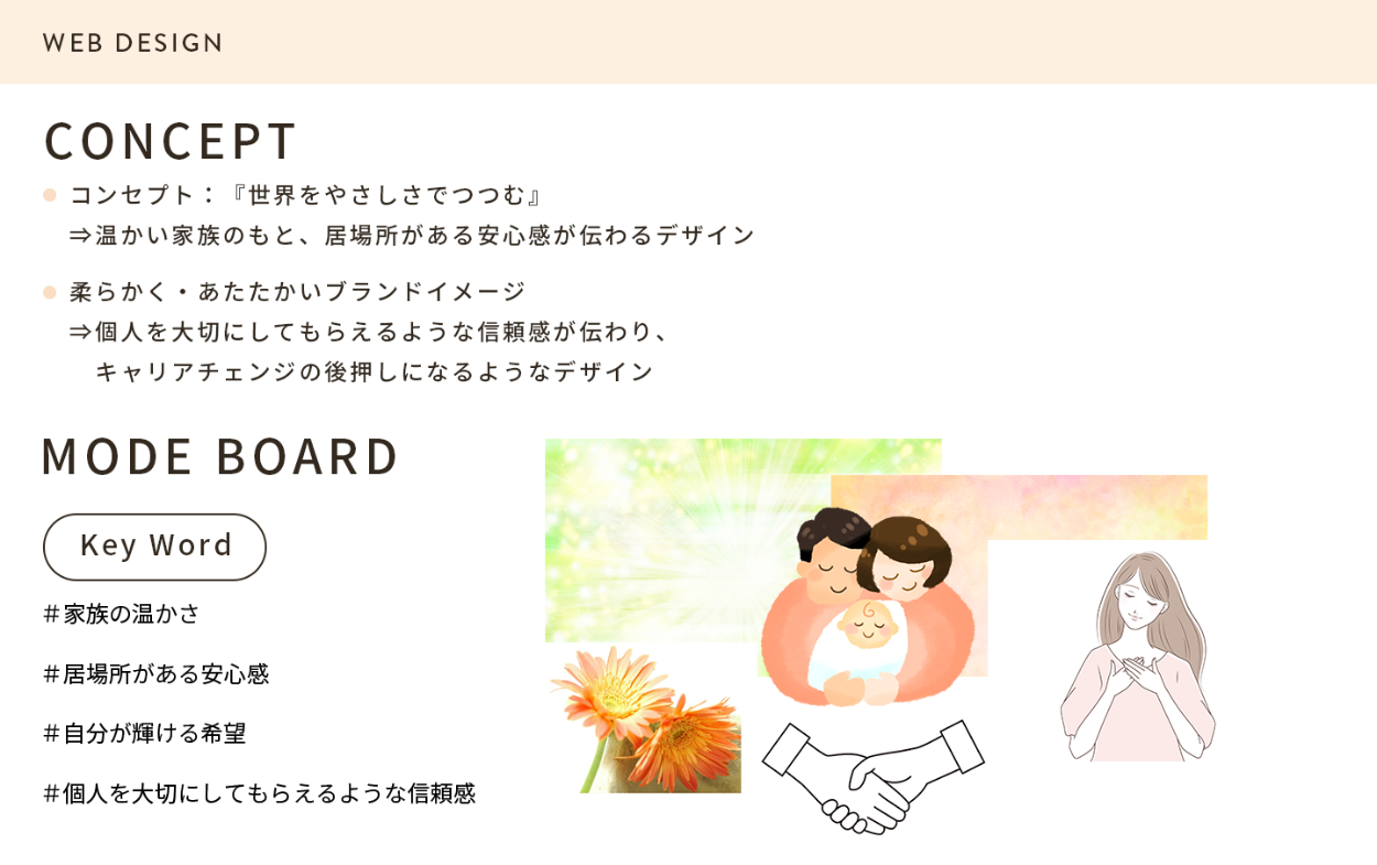 ・メインカラー:オレンジ(あたたかい会社のブランドイメージが伝わるように使用)
