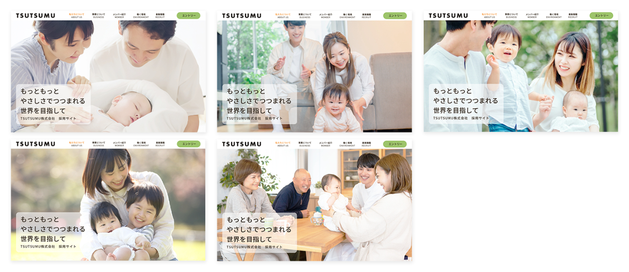 ・温かい家族のイメージを伝えるために、様々な家族の笑顔の写真をスライドで表示