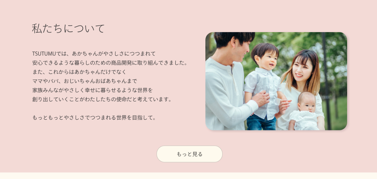 今後は家族向けサービスの展開をしていくと依頼内容にあったので、私たちについてには家族の楽しそうな写真を入れています。