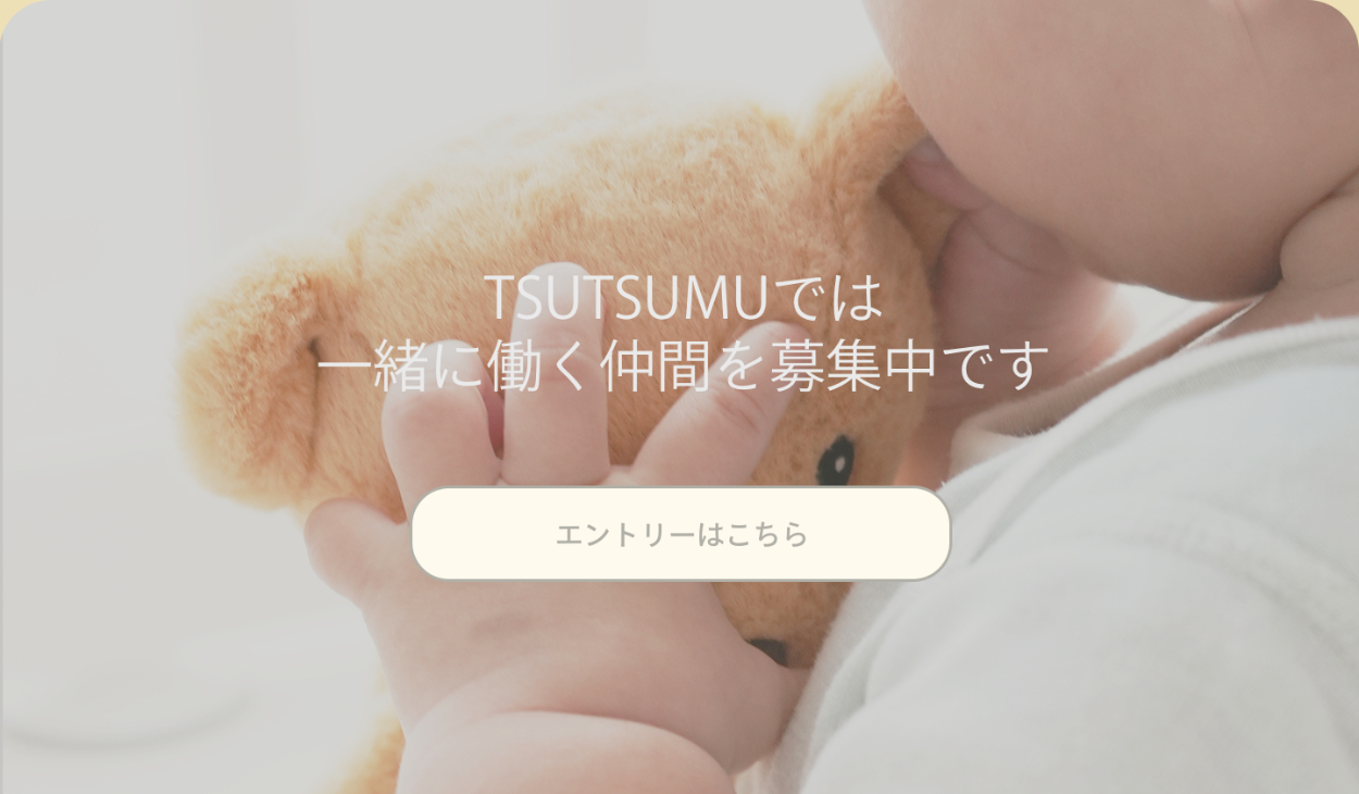 TSUTSUMUという会社名から、やさしさ、やわらかい、あたたかいを想像し写真と色を選びました。写真の角等を丸くして見た目にも赤ちゃんにもやさしくして、応募する方の緊張している気持ちが和らぐようなものにしました。