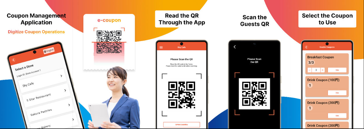 宿泊施設やその周辺地域等の事業者の運営社向けのクーポン管理アプリ