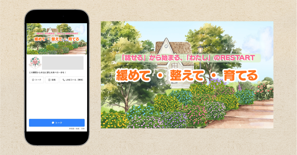 初見でも安心感が伝わるよう文字の読みやすさと余白大切にしました。また、名刺・ロゴの制作に合わせて公式LINEも統一し、覚えてもらいやすさを意識して制作しました。