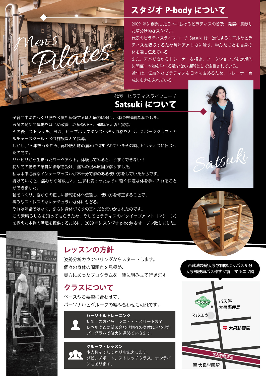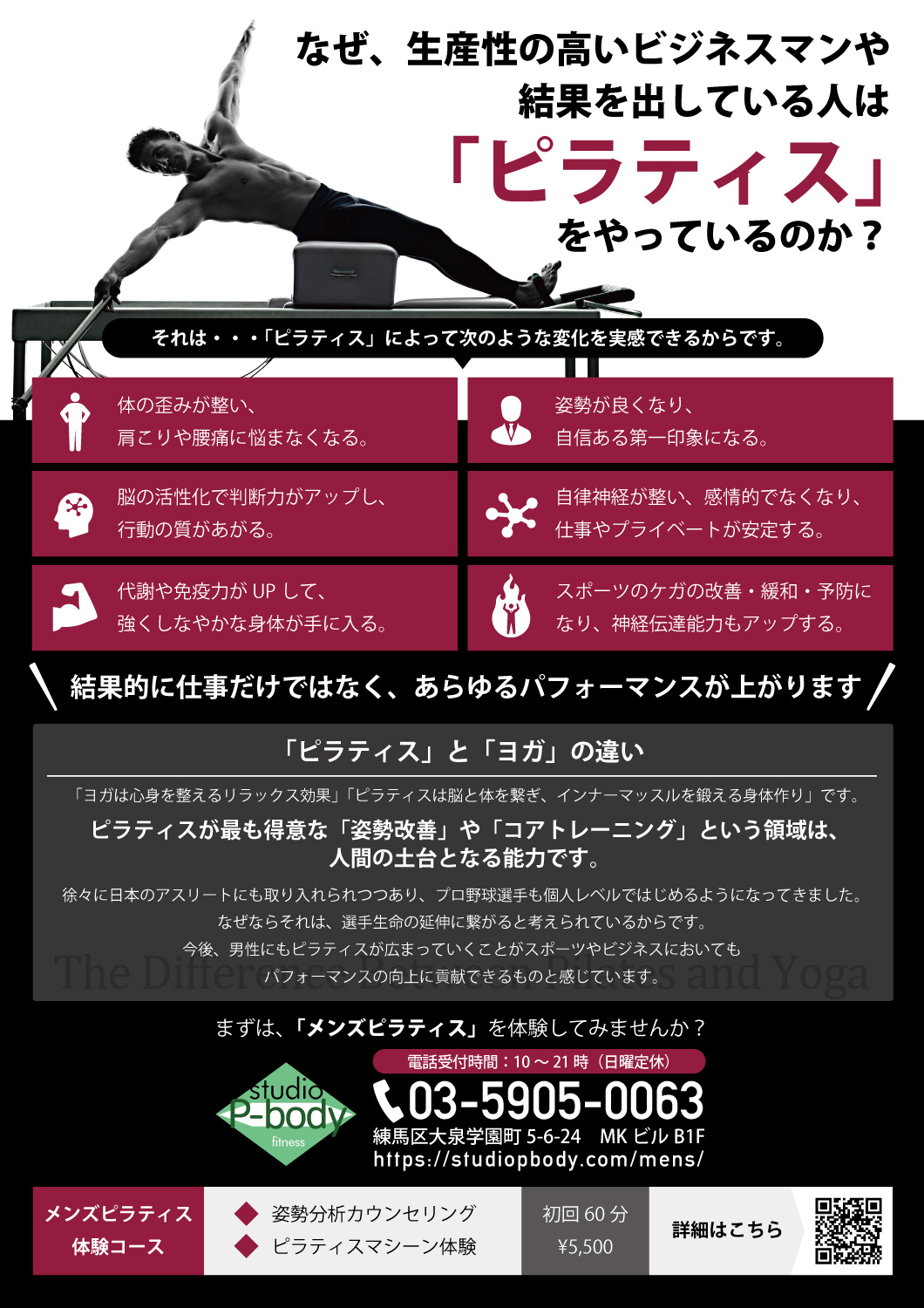 女性会員が大半を占める「ピラティス」を、男性に対して訴求するためのチラシ作成。