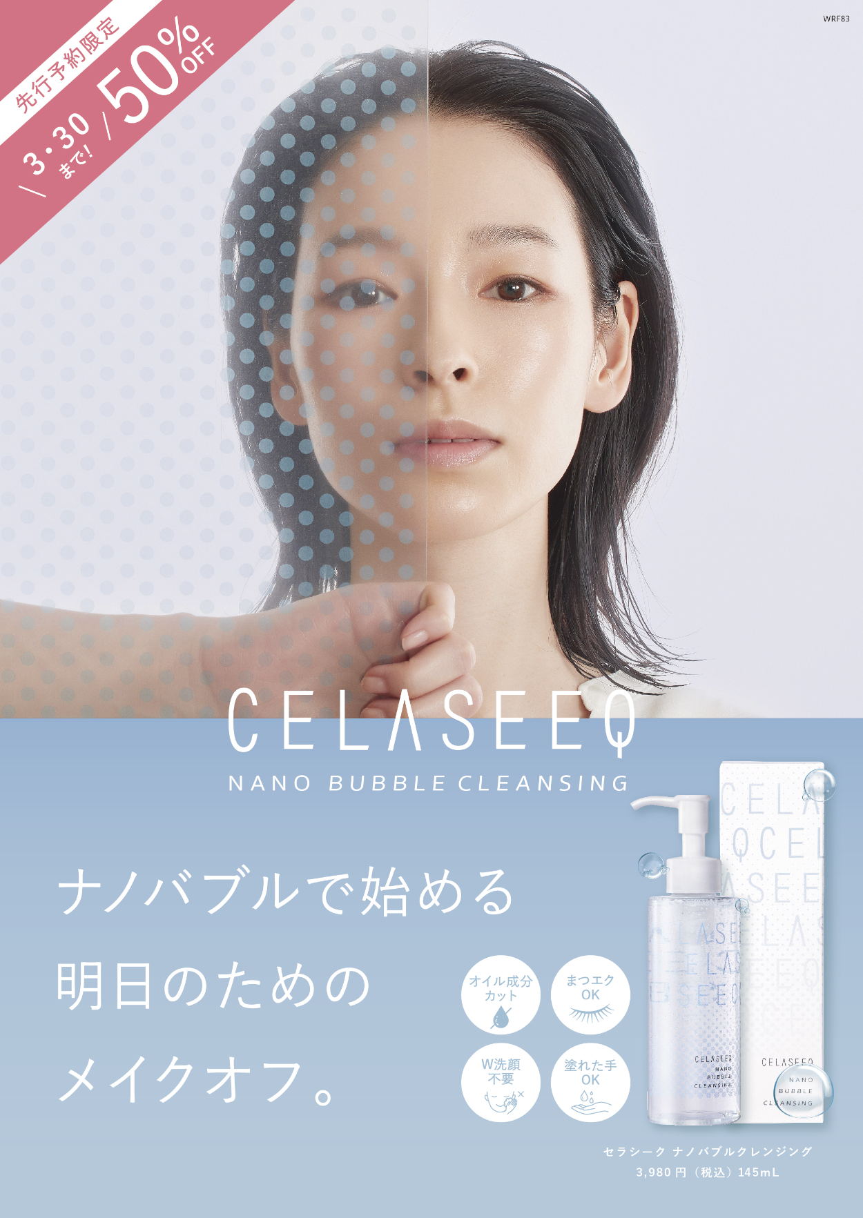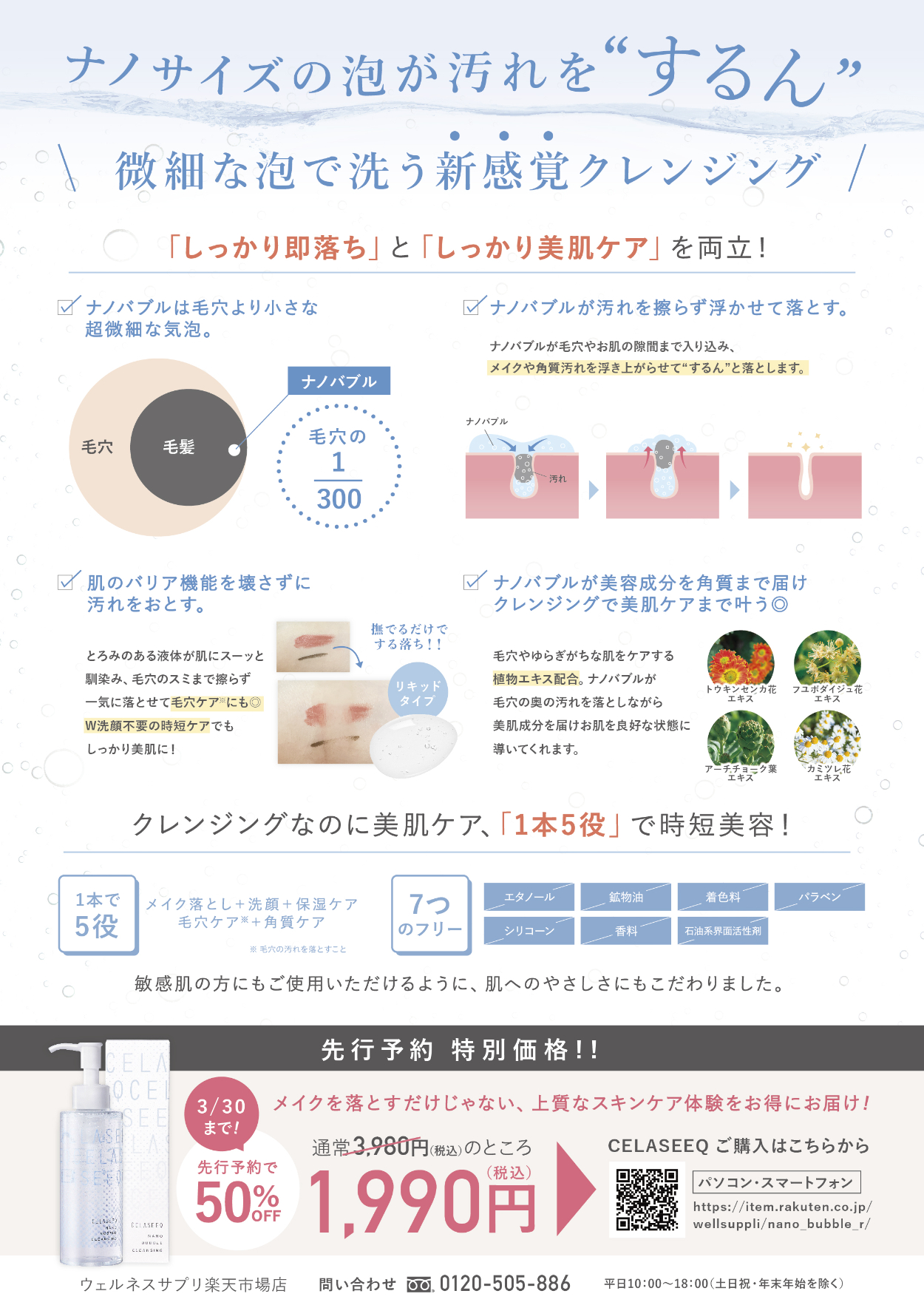 ナノバブルクレンジング 楽天用同梱物 giine デザイナー OVERVIEW ナノバブルクレンジング発売に向けての商品の詳細と 先行予約で50%OFFのキャンペーンを告知するための同梱物 YEAR 2022 表面裏面 制作サイズ W 182mm × H 257mm