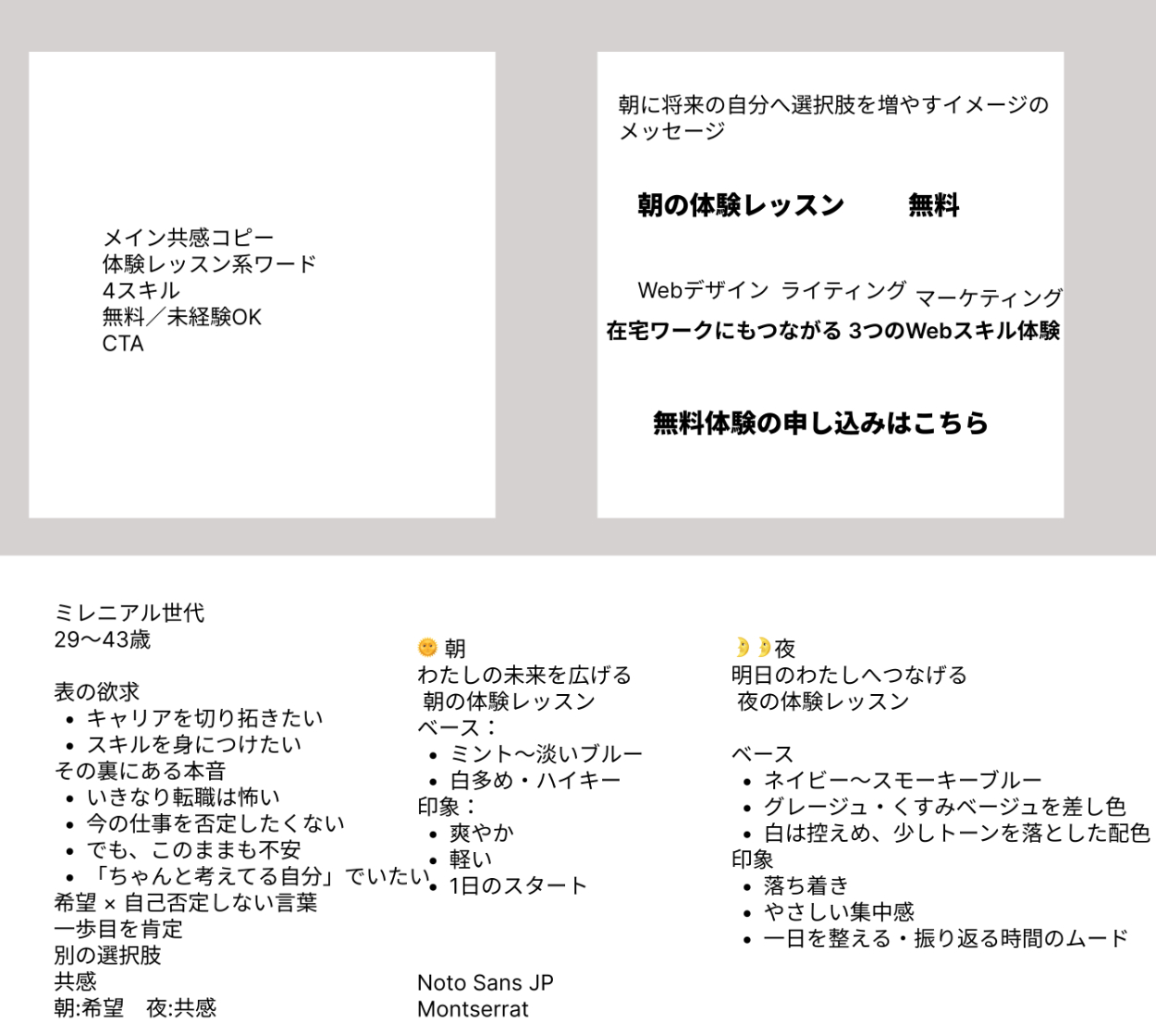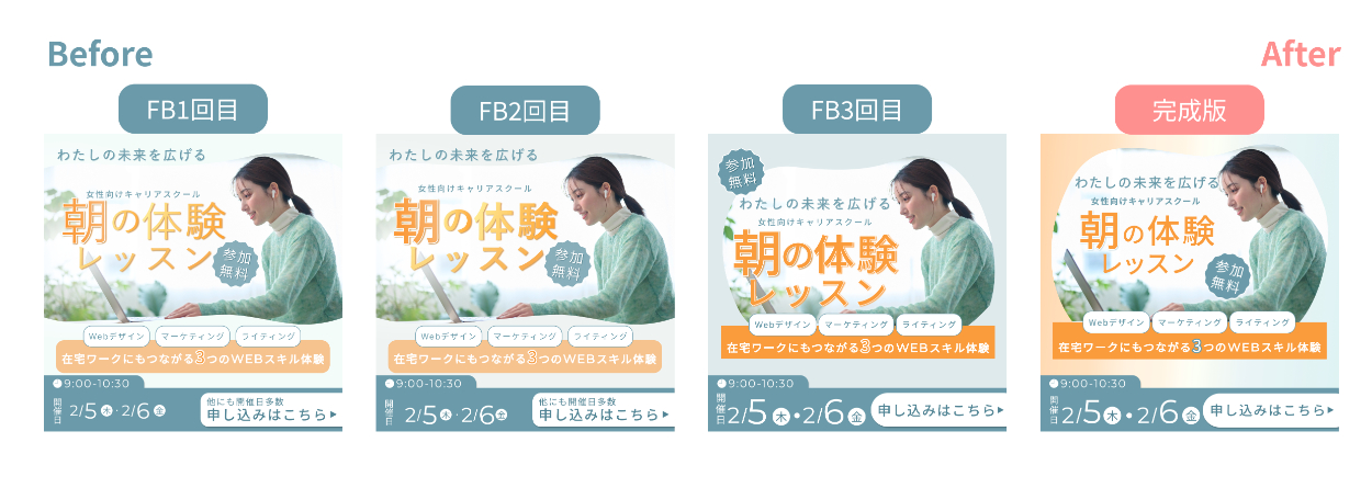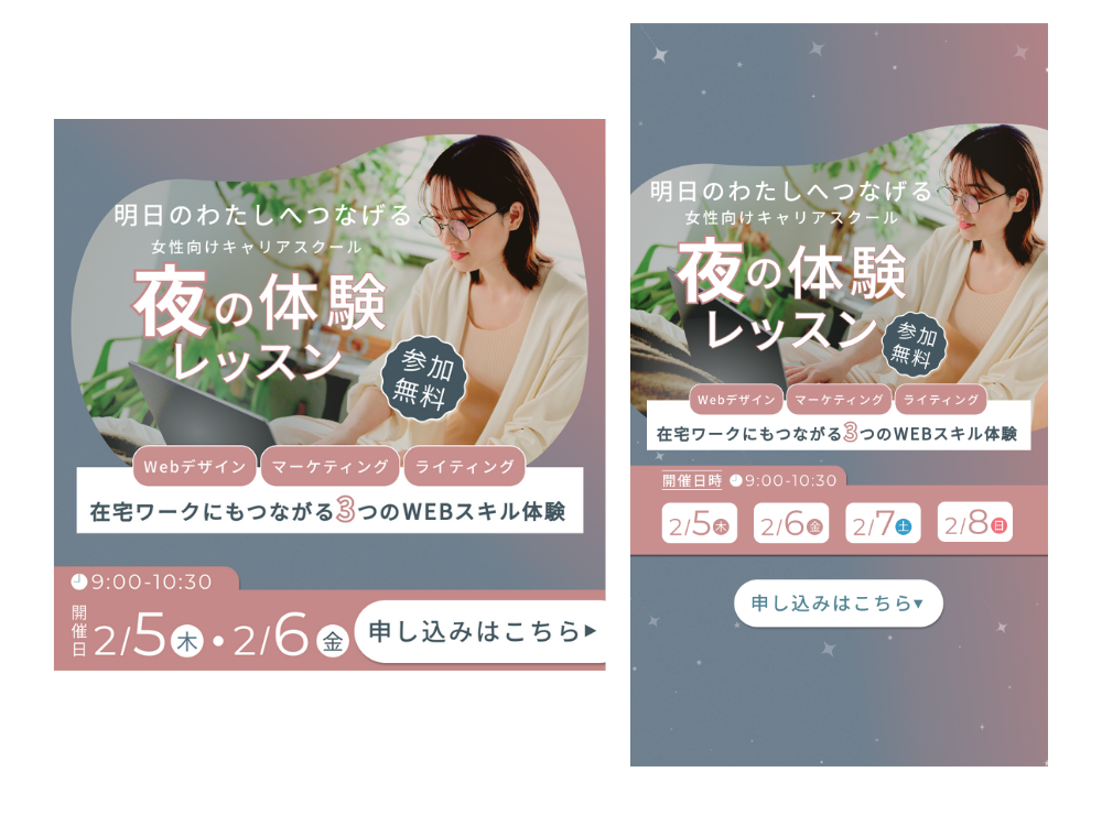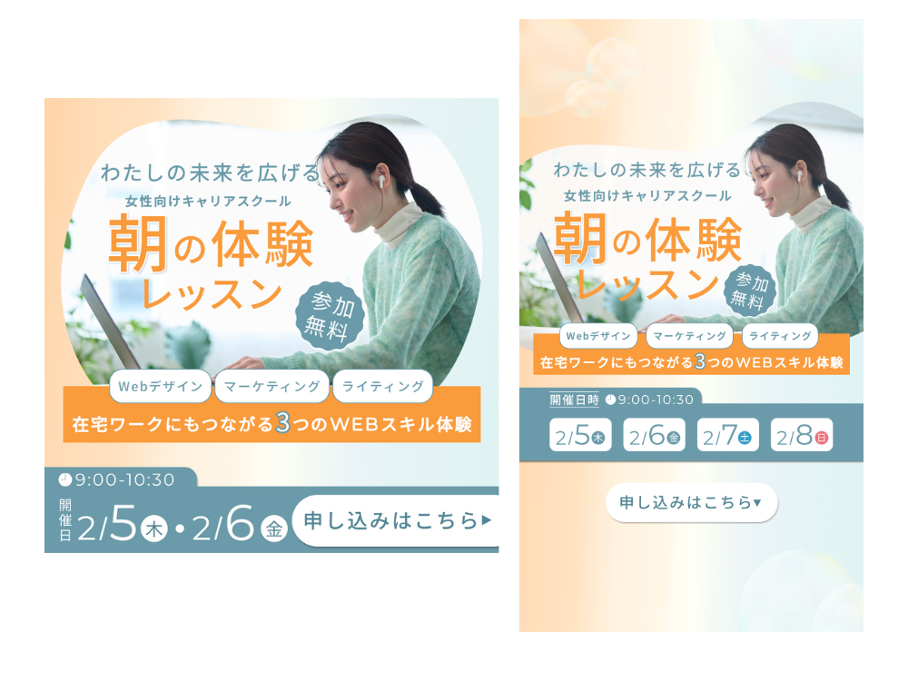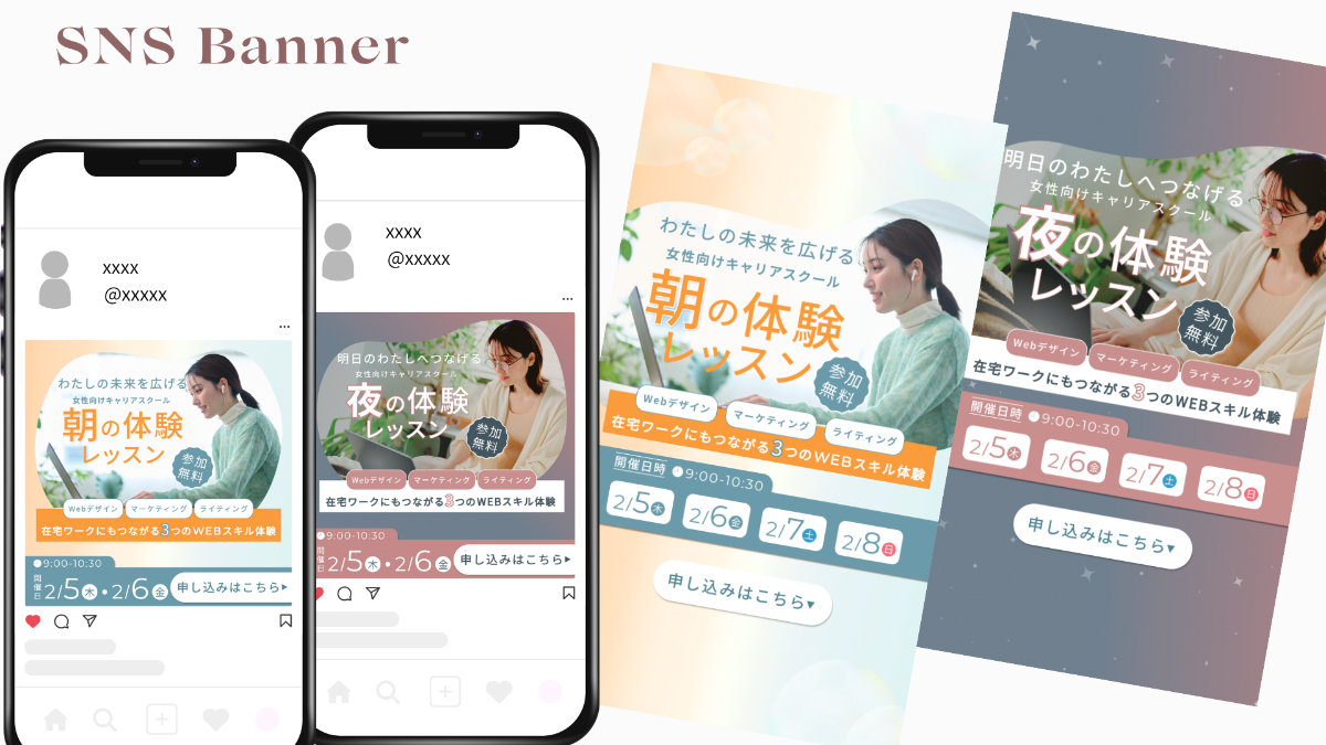 【自主制作】女性向けキャリアスクール 朝・夜の体験レッスン告知バナー