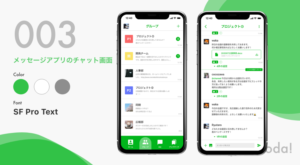 LINEっぽい見た目ですが、Slackを参考にしたスレッド型のメッセージアプリです。