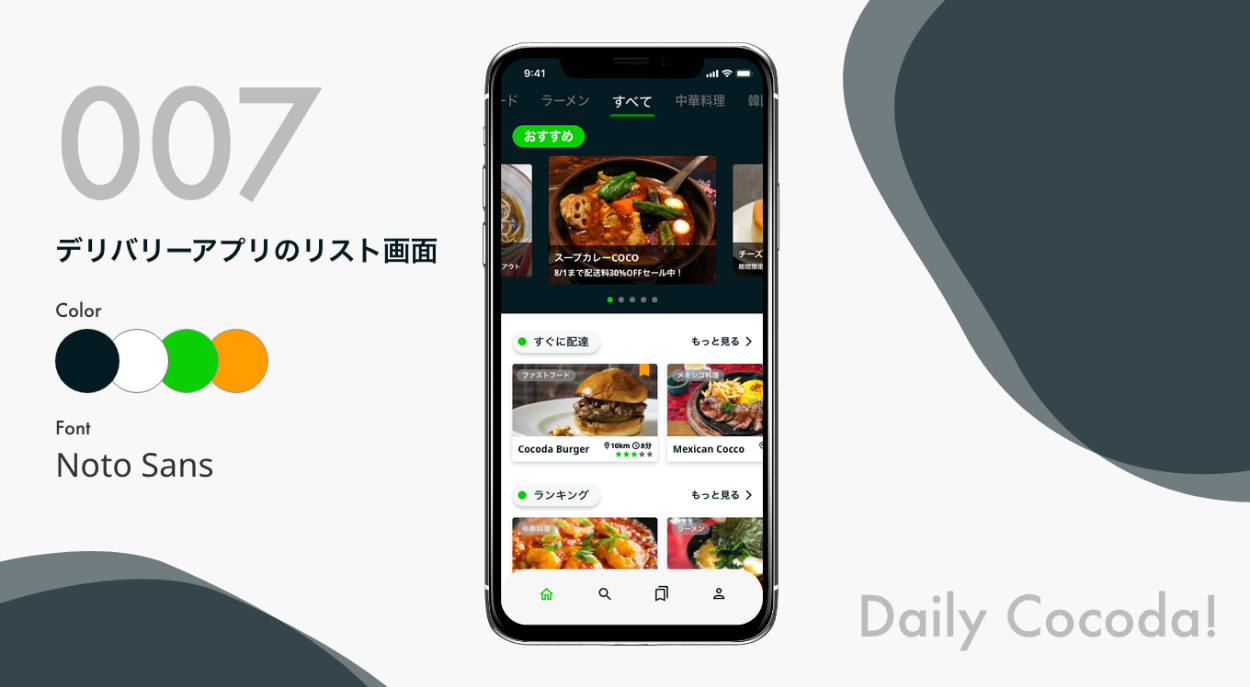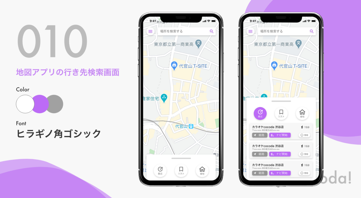 デザイン学習サービスcocoda!のお題に沿ってUIデザインを制作しています。随時更新中です。