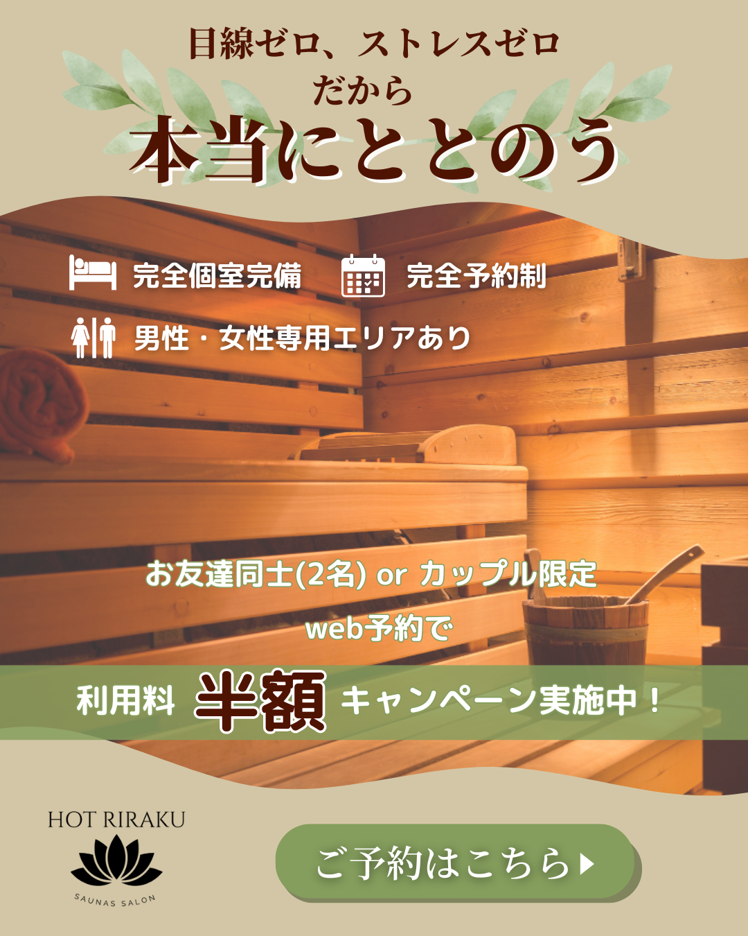 サウナサロンのためリラックスや落ち着き感のある印象のバナー
