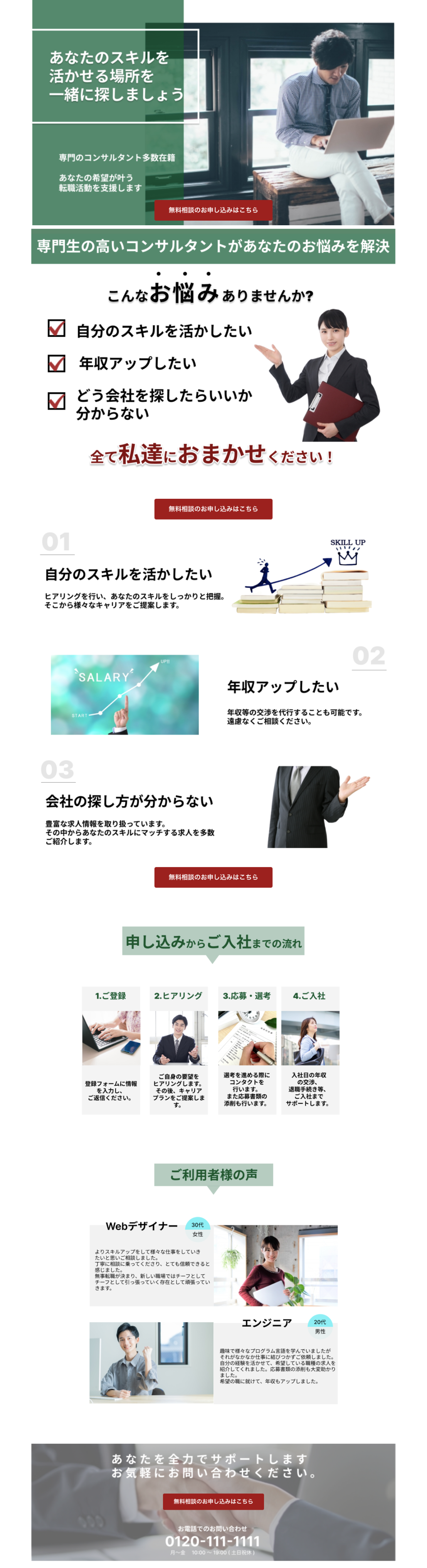 「転職のためのキャリアコンサルタント相談の申し込みに繋がるランディングページの作成」
