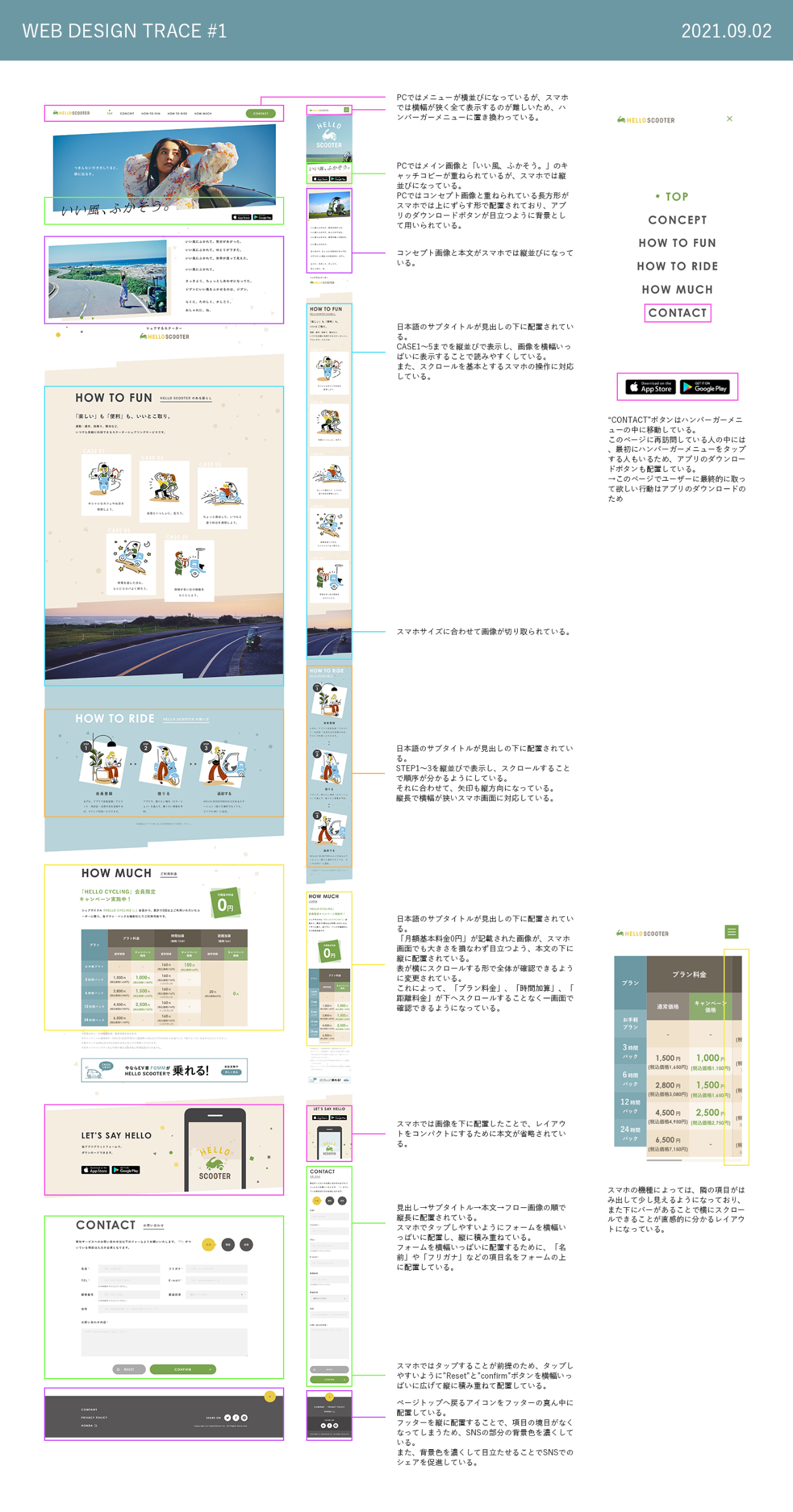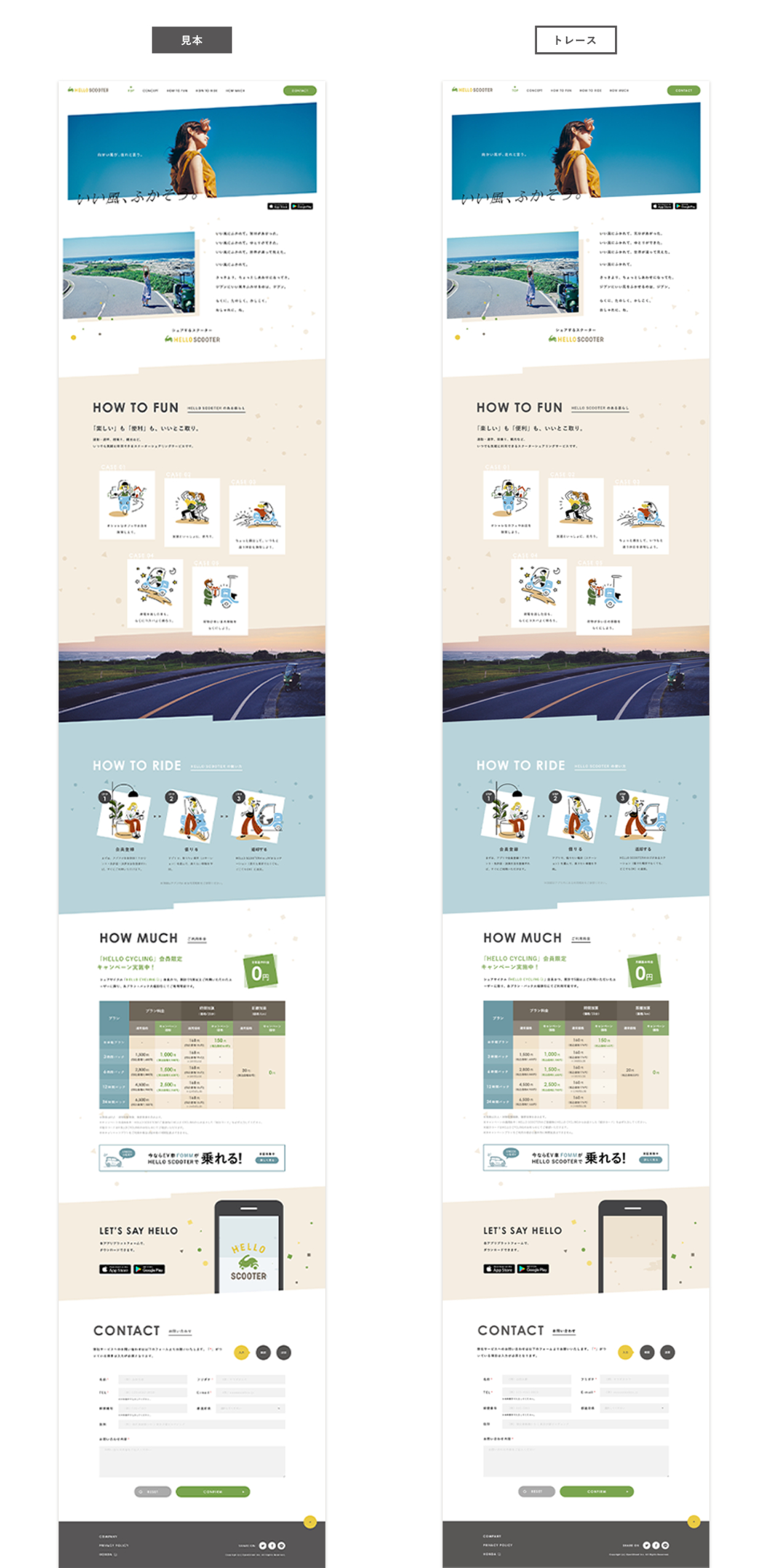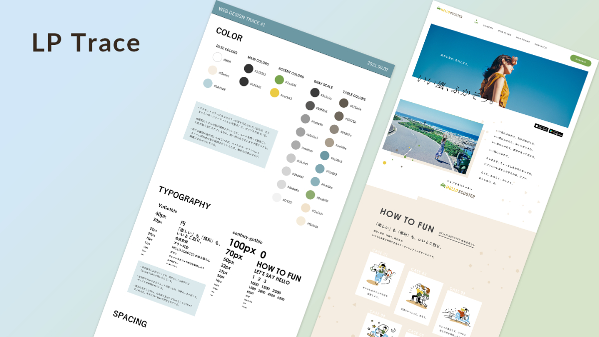 今回はOpenStreet社が提供する「HELLO SCOOTER」のLPをトレースしました。(現在はデザインが変更されています)